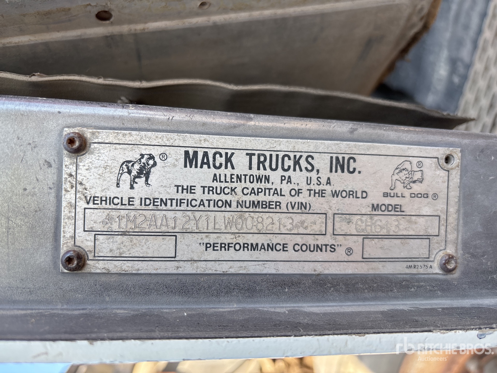 Mack EM7 6 Cylinder Diesel 300 hp Engine, 1990 US EPA Label, Manual Transmission, Aluminum Outer Wheels, 11R22.5, Spring over Walking Beam Suspension, 268 in Wheelbase, 24 ft x 97 in Bed