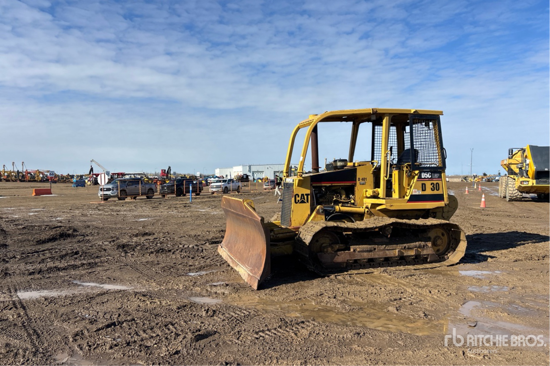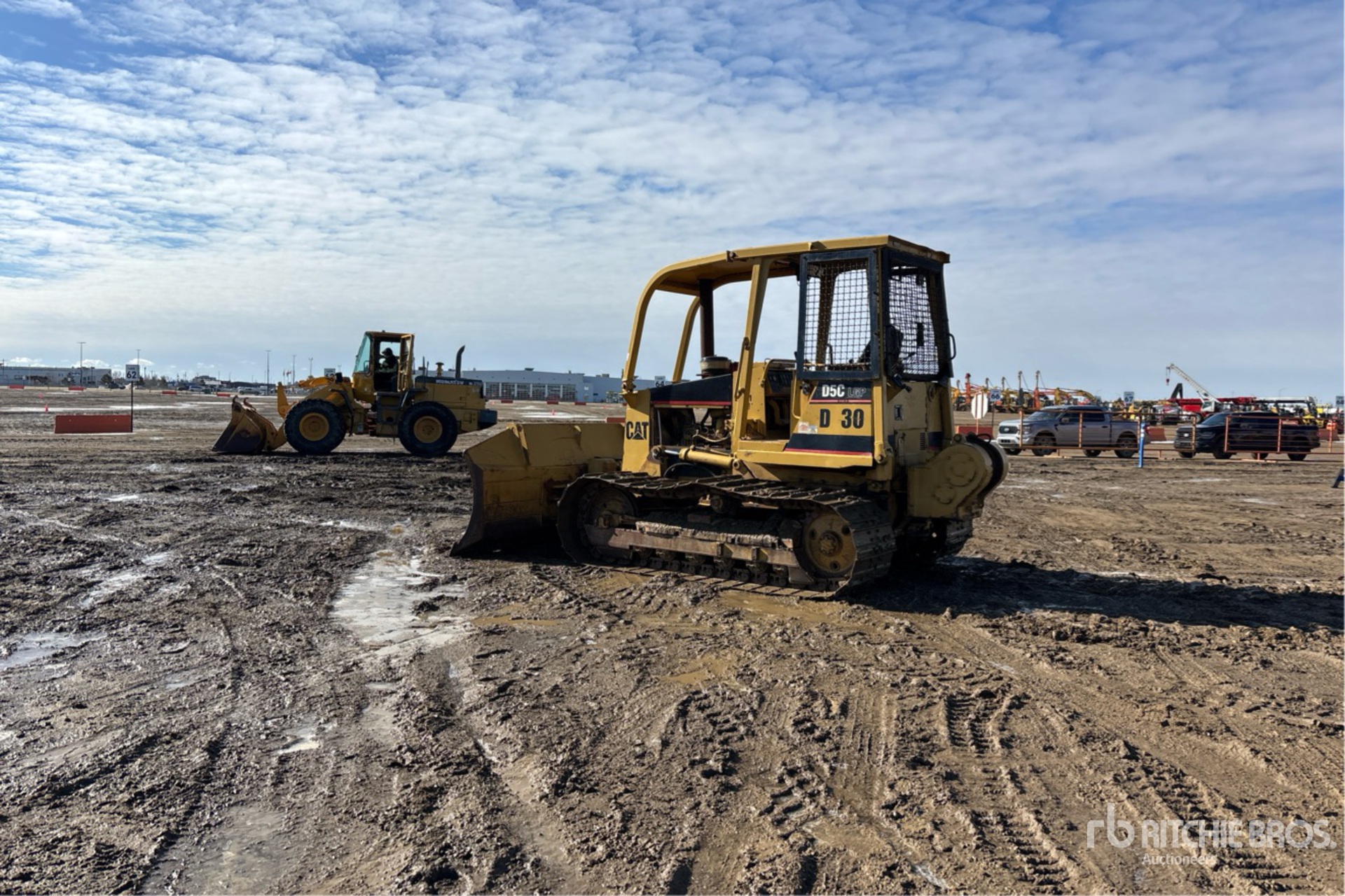 Open Operator Station, Sweeps, 124 in Wide PAT Blade, 26 in Single Grouser Track Shoes, Carco 30B Winch