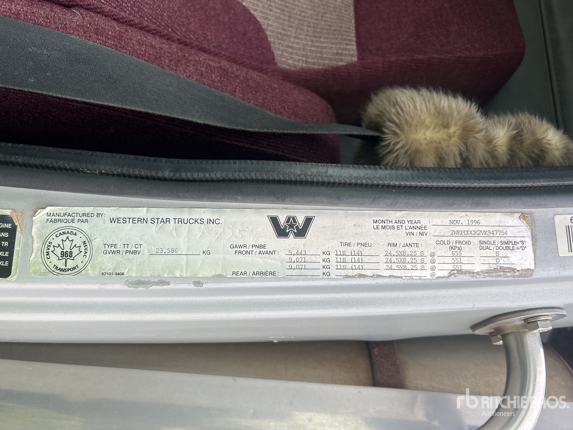 Cat Engine, 36455 Engine hrs, Eaton Fuller Manual Transmission, 5443 kg Front Axle, 18282 kg Rears, 23586 kg GVWR, 48 in Flat Top Sleeper Cab, 231 in Wheelbase, Air Suspension, Aluminum Front Wheels, 11R24.5 Front Tires, 11R24.5 Rear Tires, Air Sliding 5th Wheel, Dual Fuel Tanks