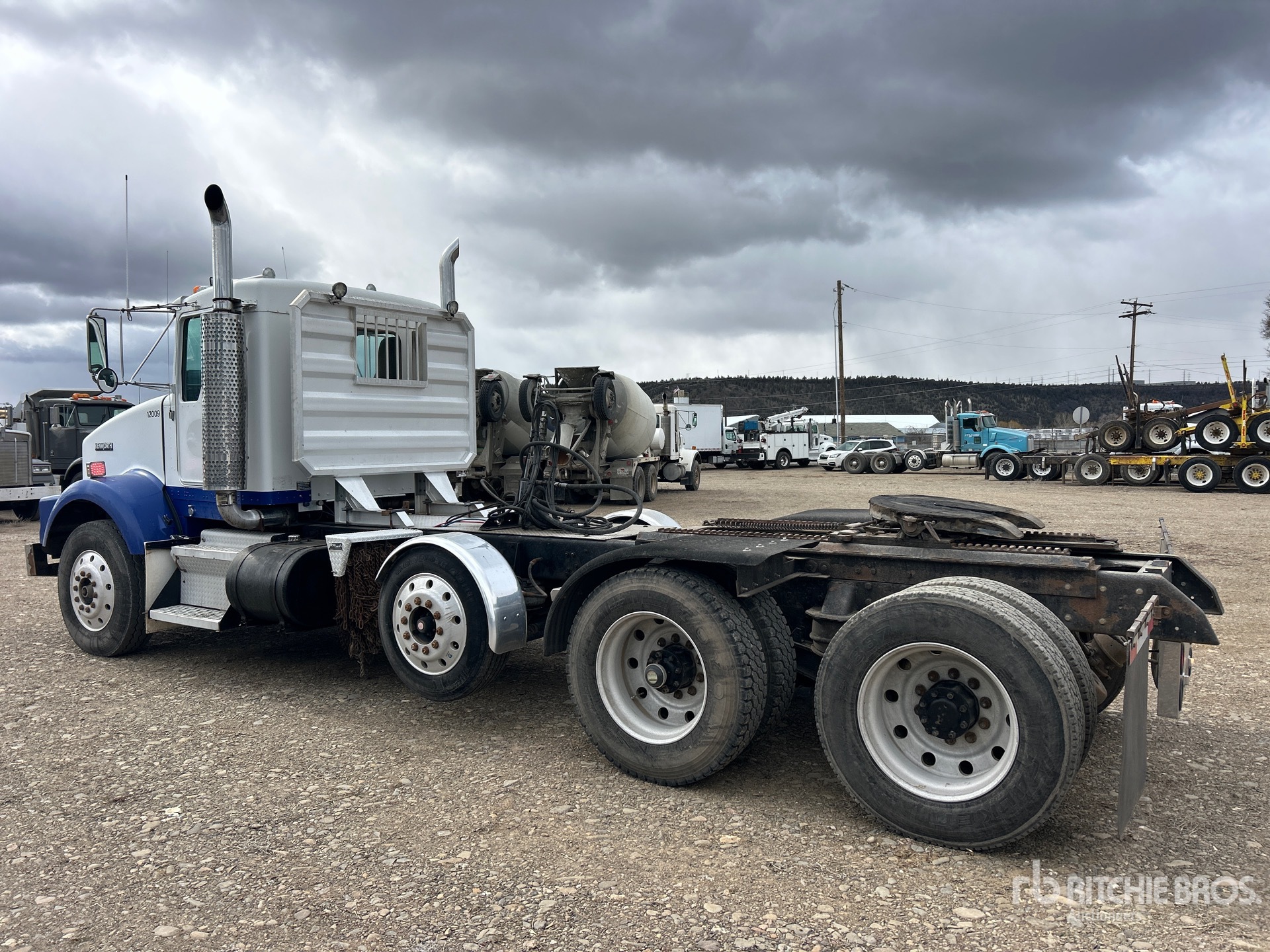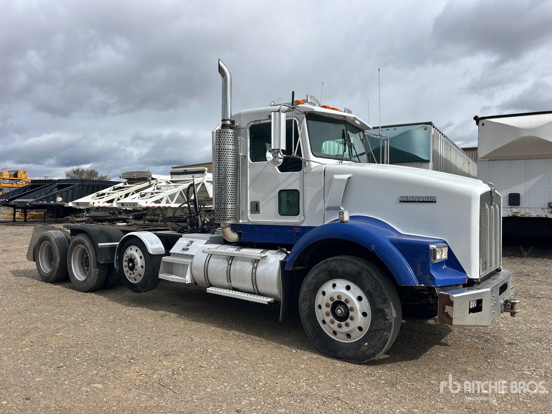 Cummins N14 435 hp Engine, Eaton Fuller Manual Transmission, Engine Brake, 235 in Wheelbase, Walking Beam Suspension, Air Lift Pusher Axle, Aluminum Outer Wheels, 11R24.5 Front Tires, 285/75R24.5 Rear Tires, Wet Kit, Air Sliding 5th Wheel