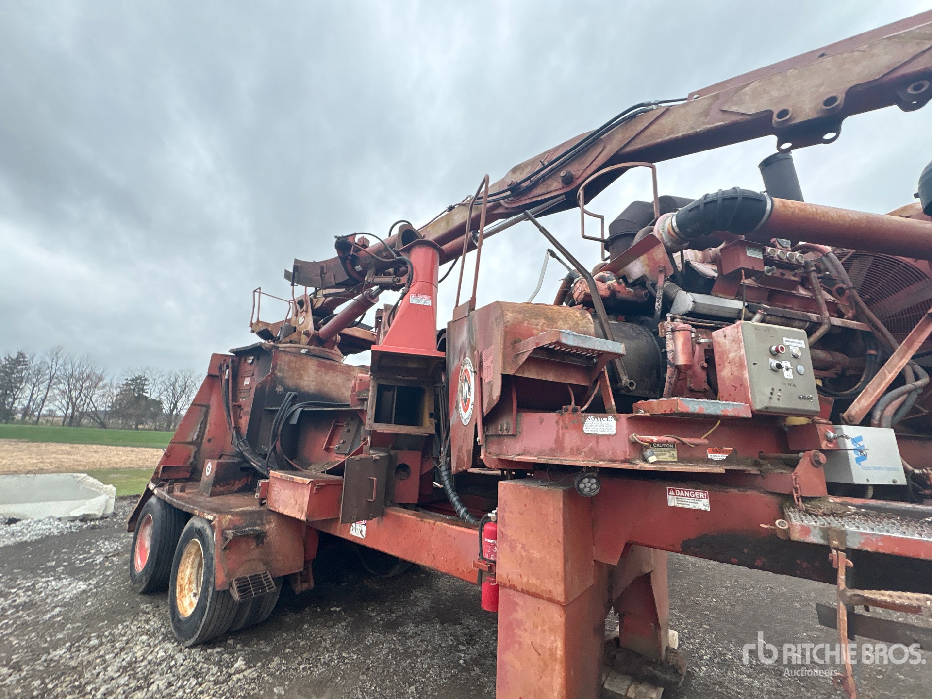 Cat 12 Cylinder Diesel Engine, 56 in Feed Opening, Swivel Discharge Chute, Knuckle Boom Loader Arm, Electric Brakes