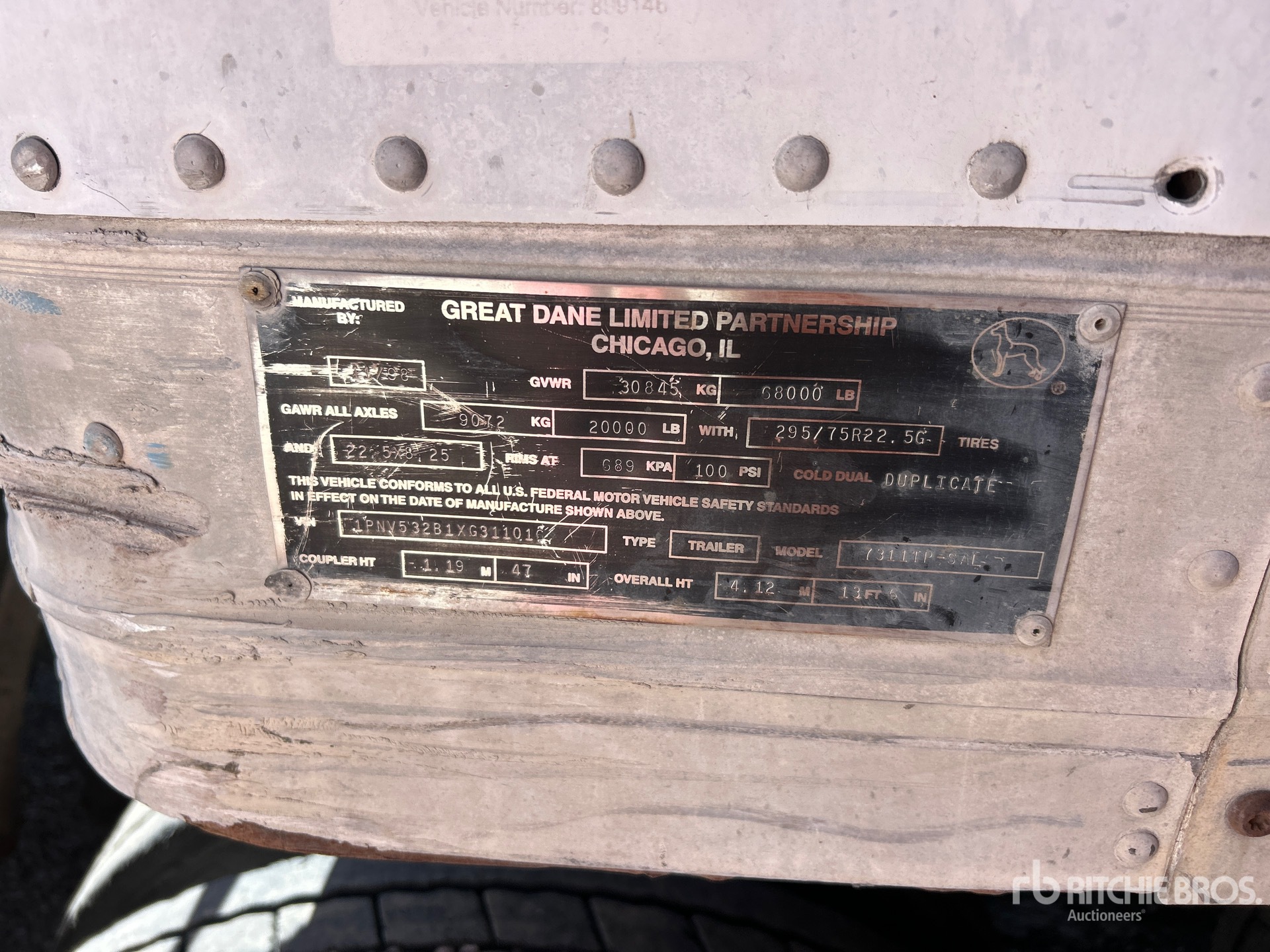Air Ride Sliding Suspension, 295/75R22.5 Tires 68000 lb GVWR