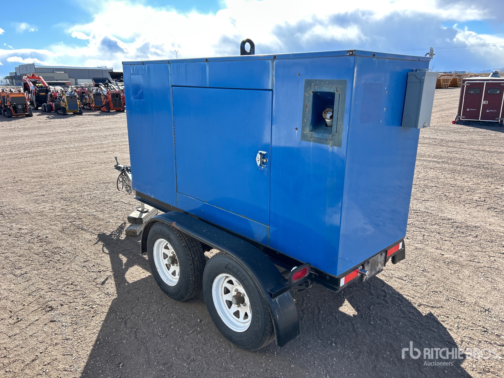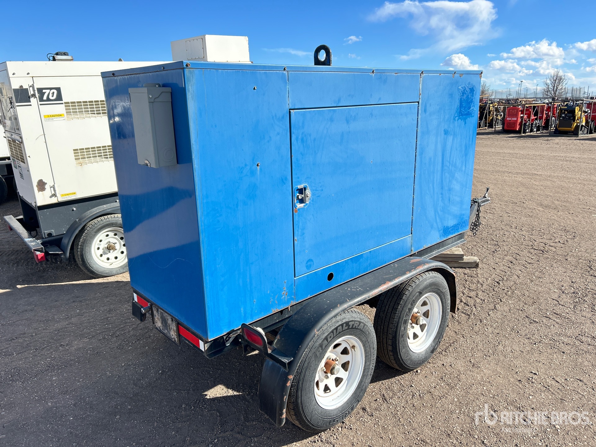 1999 US EPA Label, Perkins 52.9 kW 4.2 L Diesel Engine, /30 kW Rated 3 Phase Output, 120 V / 208 V Rated Voltage, Sound Attenuated, Bottom Mounted Fuel Tank, Ball Hitch Carrier Trailer