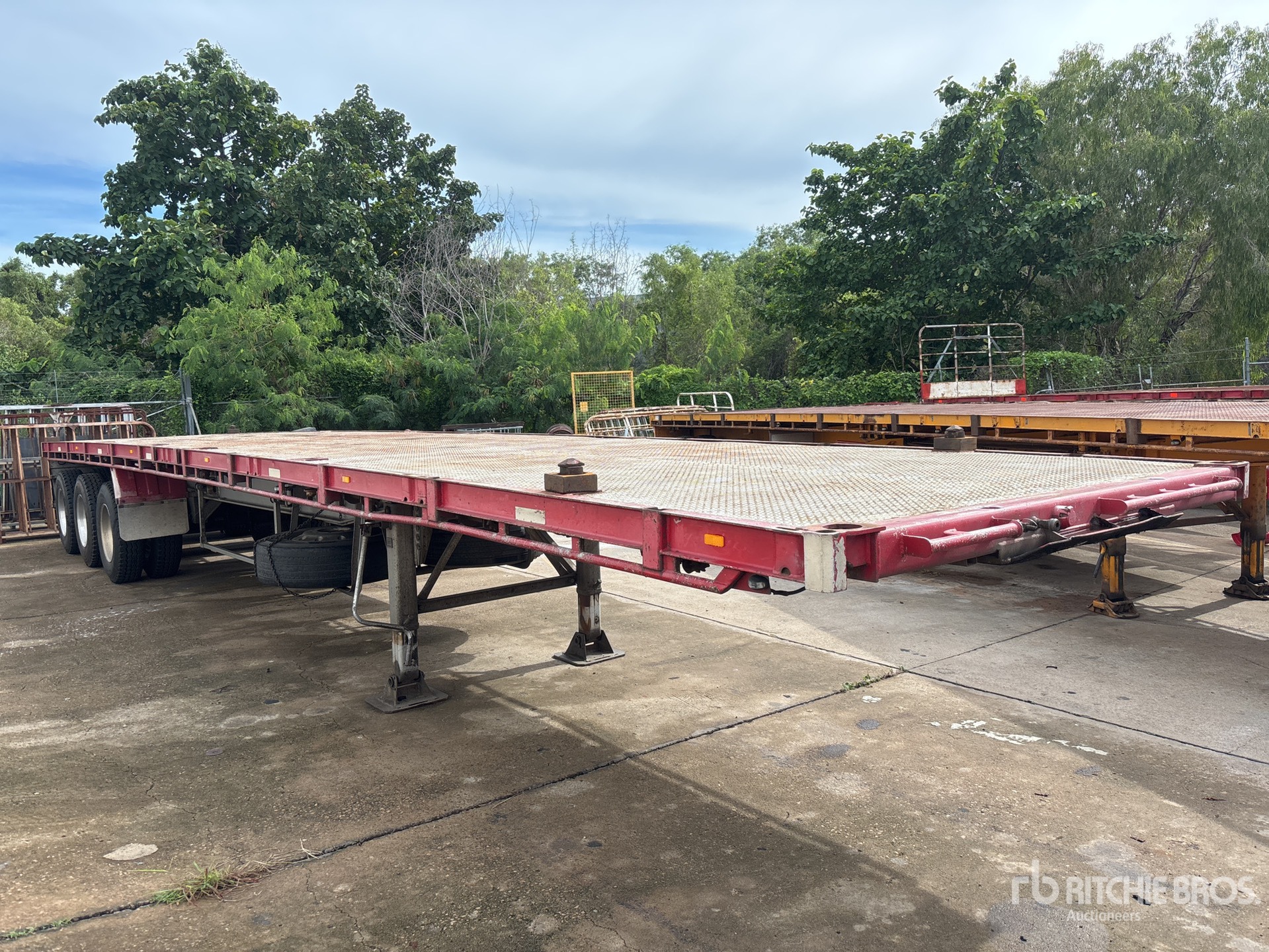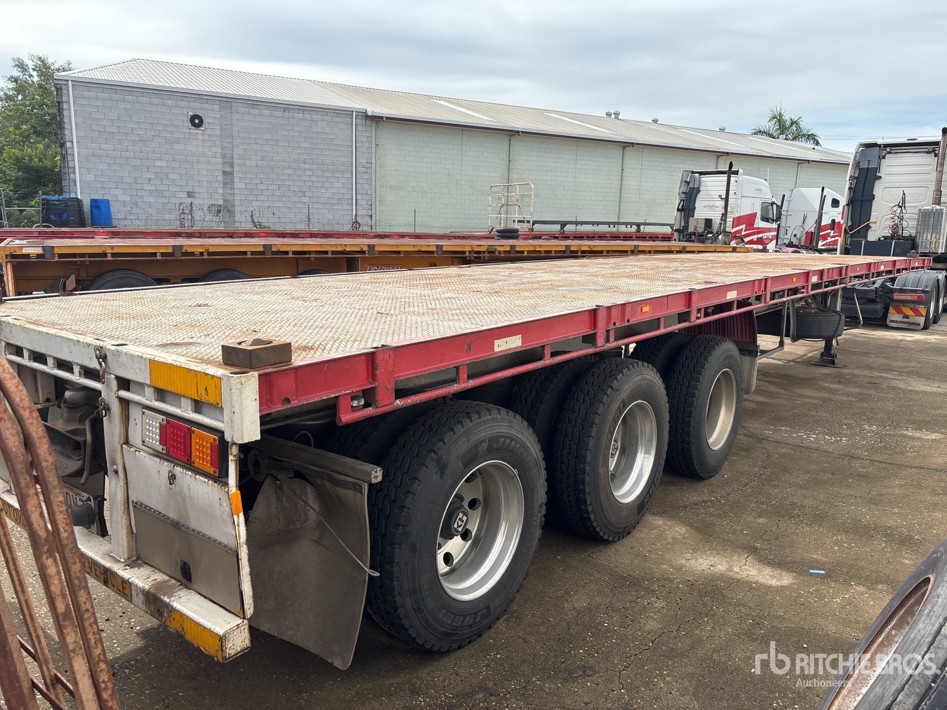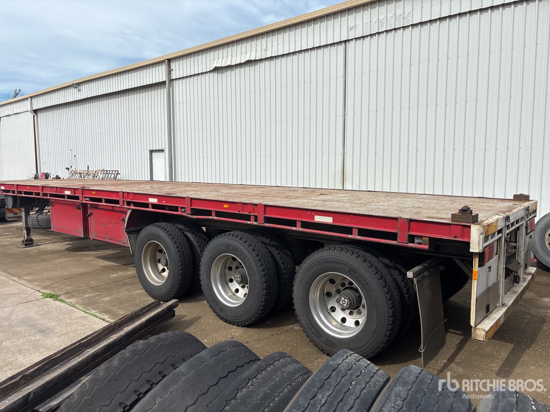 Air Ride Suspension, Air Brakes, 3-Way Container Pins, Ringfeder, Steel Decking, Aluminum Wheels, 11R22.5 Tires, ATM 40 t, Bolster Pockets, 2 x Toolboxes, 60L Watertank, Full set of gates, rotating beacon, roadtrain Signage