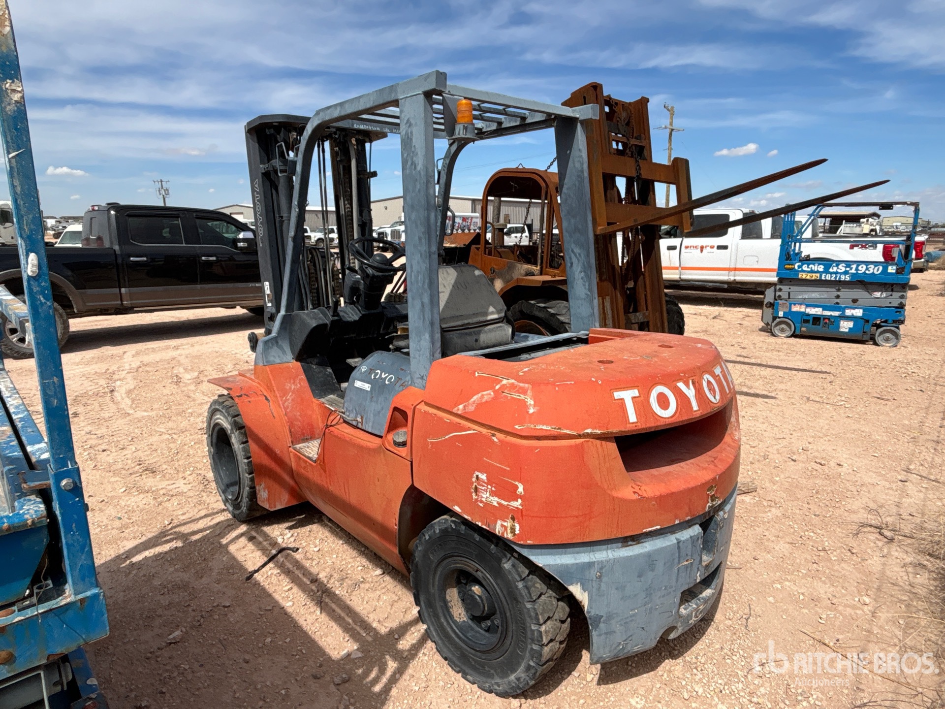 3 Stage Mast, Full Free Lift, 187 in Max Lift Height, 89 in Lowered Mast Height, 44 in Forks, GM 6 Cylinder Gasoline Engine