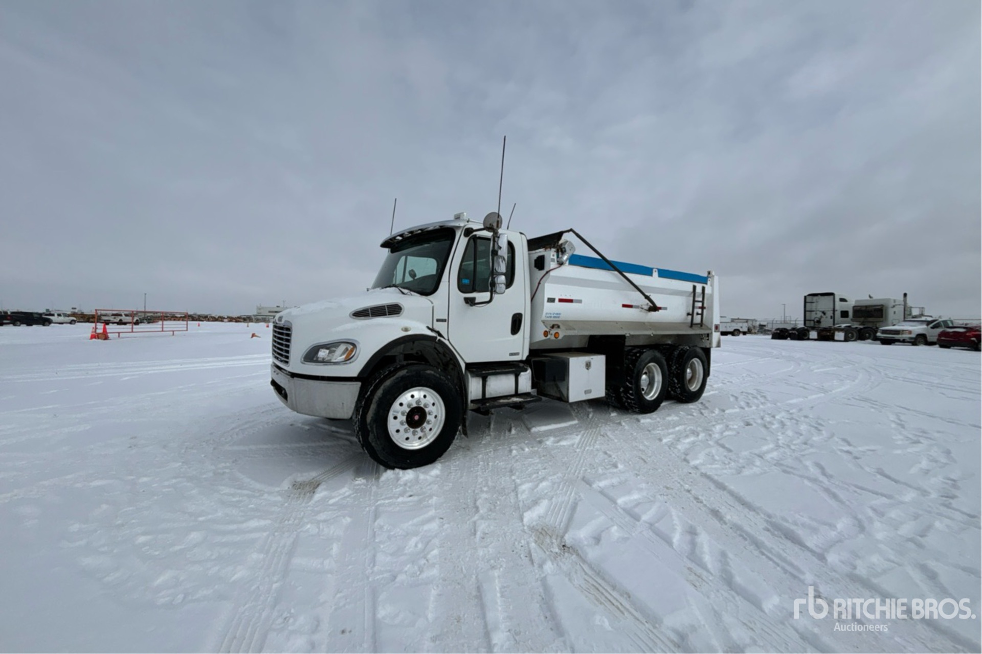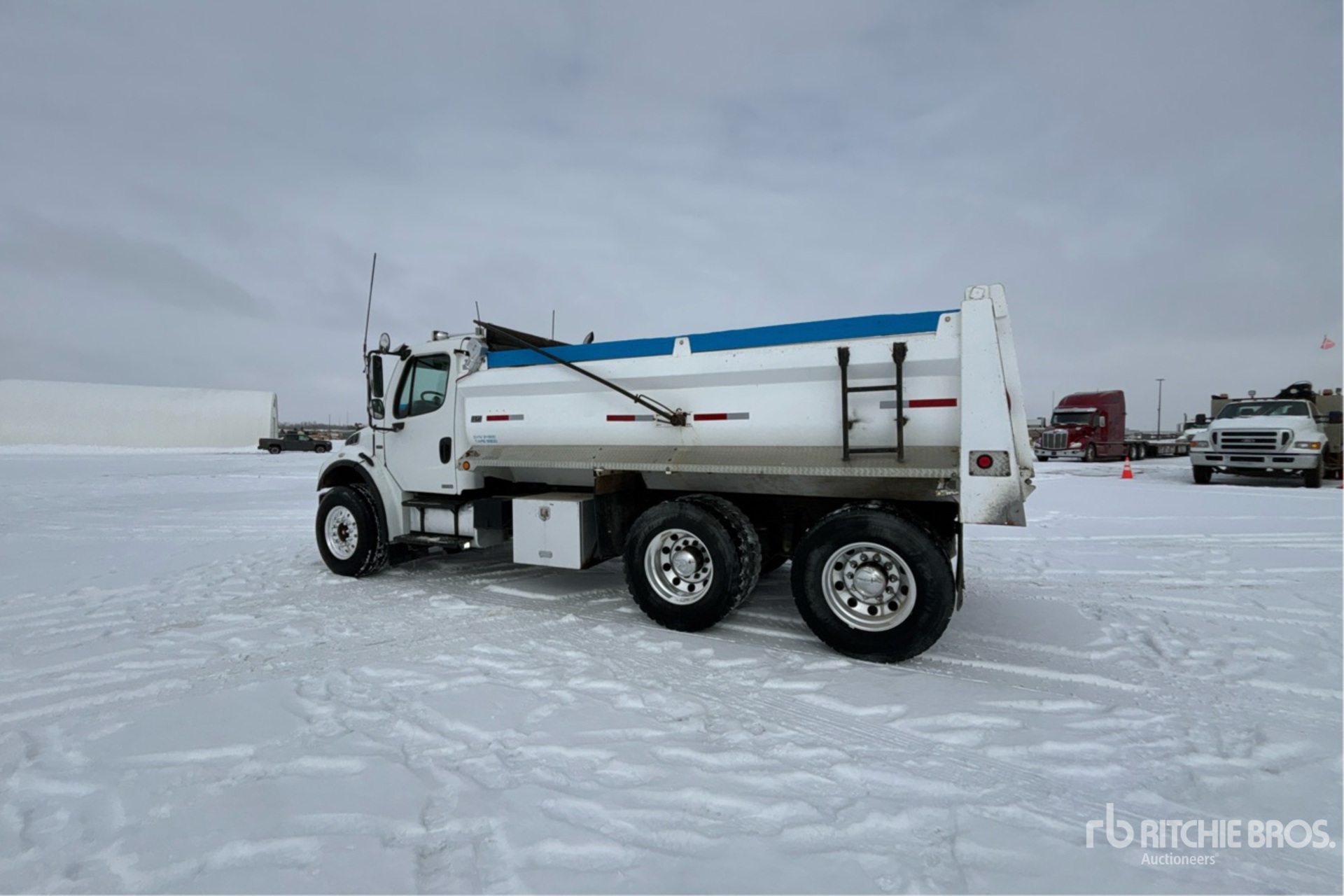 MBE900 6 Cylinder 6.4 L Diesel 280 hp Engine, 19569 Engine hrs, Engine Brake, Eaton Fuller FR-210B 10-Speed Manual Transmission, Double Differential Locks, 14600 lb Front Axle, 40000 lb Rears, Meritor RT-40-145P Drive Axles, 3.90:1 Axle Ratio, 54600 lb GVWR, Aluminum Front Wheels & Rear Outers, 385/65R22.5 Front Tires, 11R22.5 Rear Tires, Airliner Air Ride Suspension, 204 in Wheelbase, PTO, FGI 15 ft Long x 3 ft 7 in High Steel Body, Electric Roll Tarp