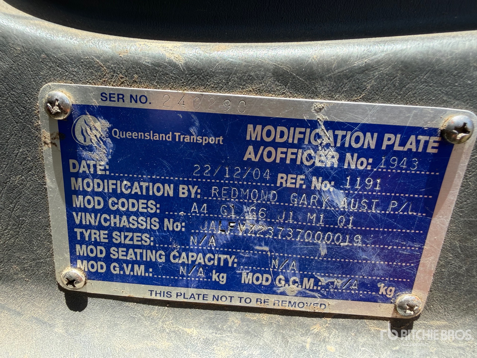 La información detallada del equipo tiene un ámbito limitado y Ritchie Bros. Auctioneers no ha inspeccionado ningún aspecto ni componente del equipo distinto de los expuestos expresamente aquí. A menos que se indique expresamente, no realizamos declaraciones ni ofrecemos garantías, expresas o implícitas, con respecto al equipo o a sus componentes, incluidas, entre otras, representaciones o garantías relativas a la funcionalidad, la conformidad o el cumplimiento de normativas de seguridad de autoridades u órganos reguladores competentes, así como tampoco sobre la aptitud para cualquier propósito particular o para fines de comercialización. Te aconsejamos que realices tu propia inspección detallada del equipo antes de la subasta.