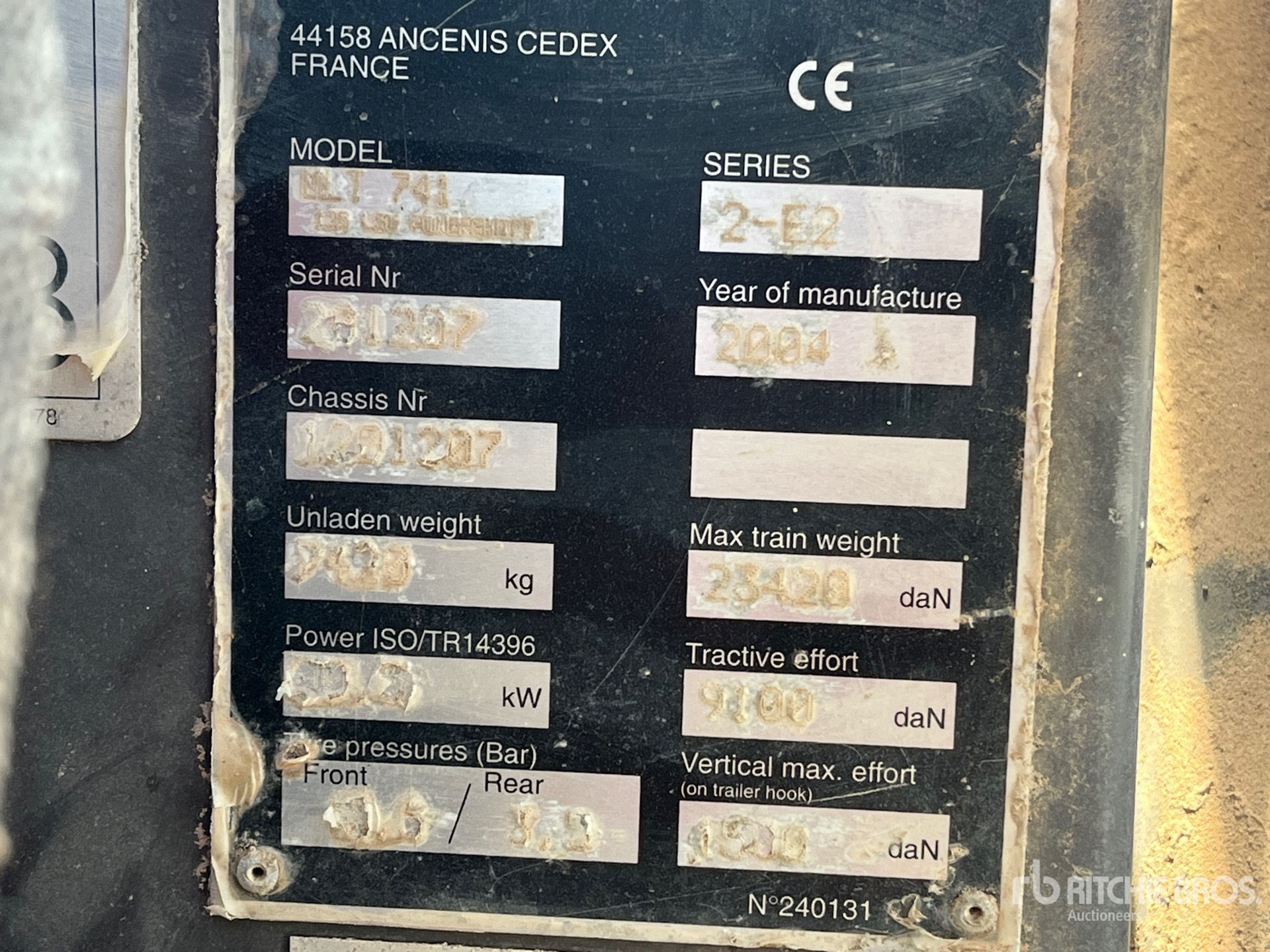 La información detallada del equipo tiene un ámbito limitado y Ritchie Bros. Auctioneers no ha inspeccionado ningún aspecto ni componente del equipo distinto de los expuestos expresamente aquí. A menos que se indique expresamente, no realizamos declaraciones ni ofrecemos garantías, expresas o implícitas, con respecto al equipo o a sus componentes, incluidas, entre otras, representaciones o garantías relativas a la funcionalidad, la conformidad o el cumplimiento de normativas de seguridad de autoridades u órganos reguladores competentes, así como tampoco sobre la aptitud para cualquier propósito particular o para fines de comercialización. Te aconsejamos que realices tu propia inspección detallada del equipo antes de la subasta.