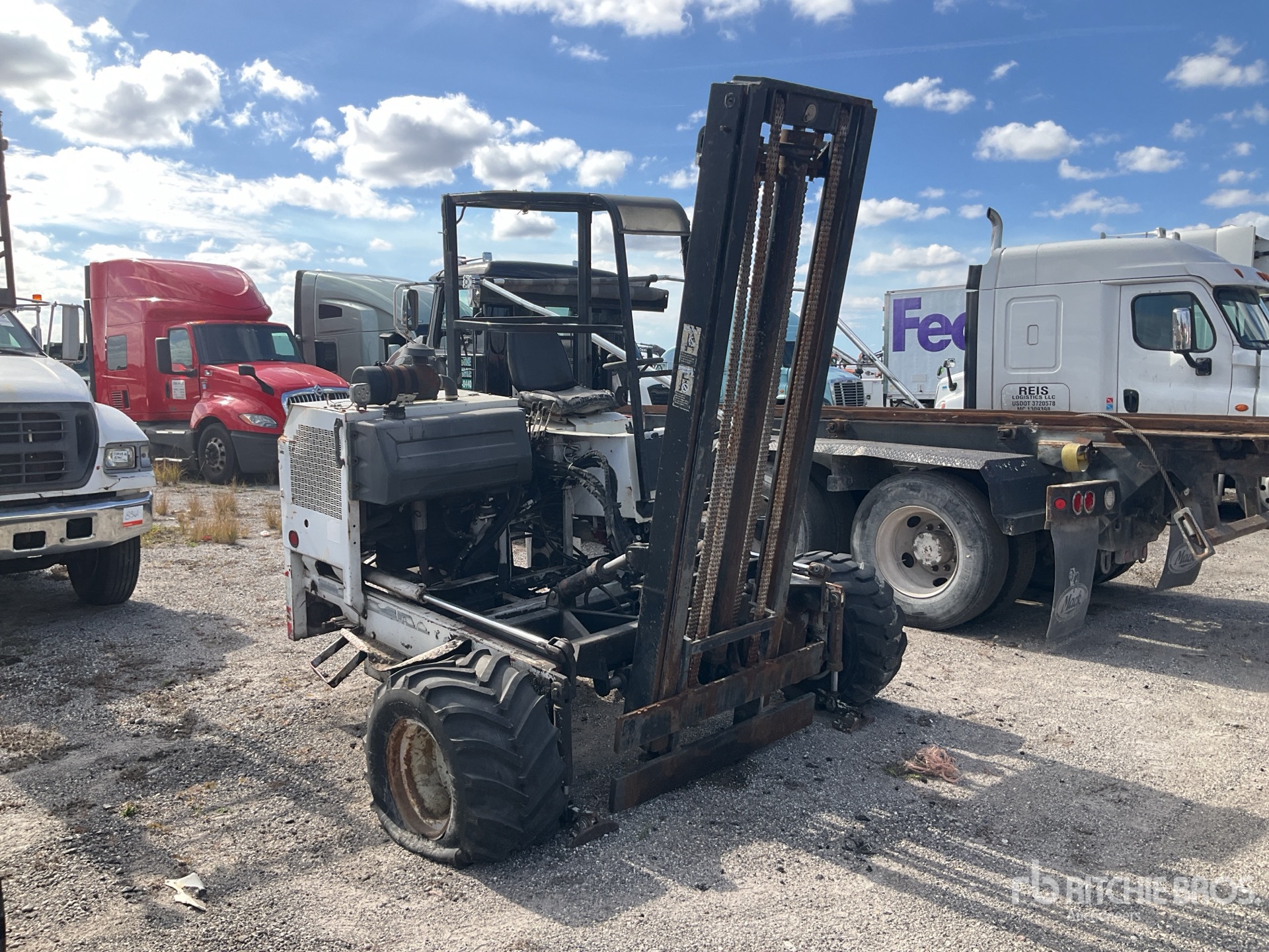 Deficient Components/Systems Include but are not limited to: unit not operational. battery disconnected. wiring near battery damaged. flat tire. multiple fittings leak hydraulic fluids. body has damage all around.