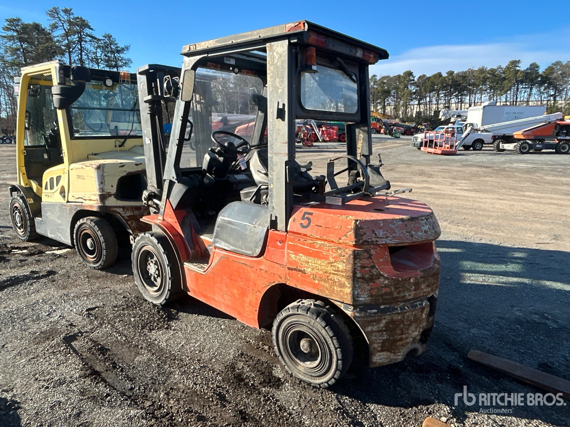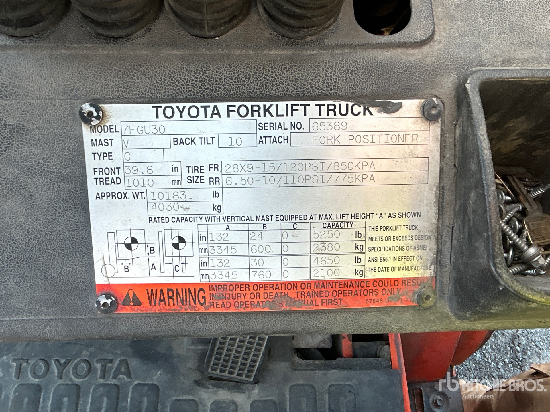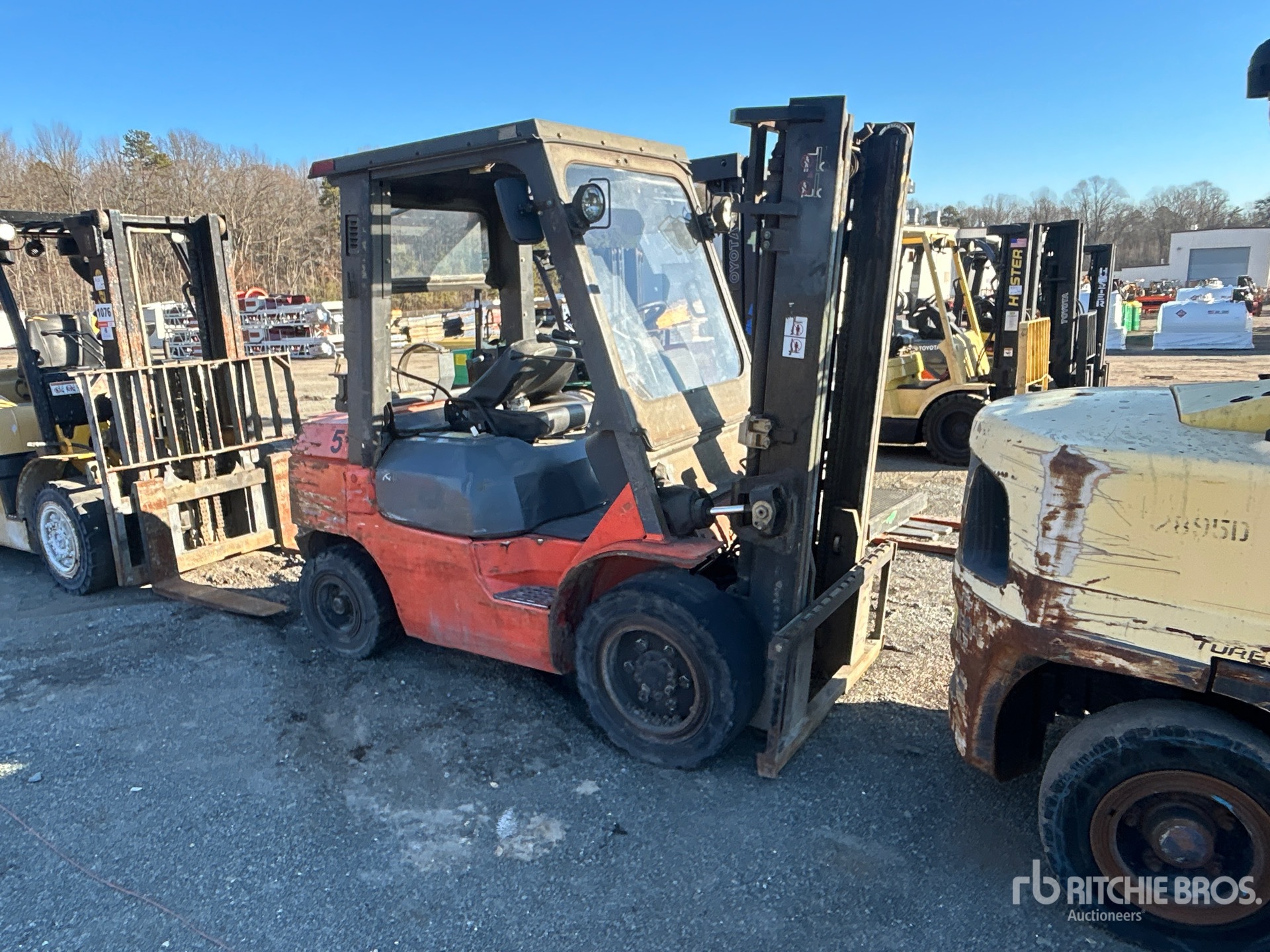 2 Stage Mast, 132 in Max Lift Height, 83 in Lowered Mast Height, Auxiliary Hydraulic Plumbing, Solid Pneumatic Tires, 2004 US EPA Label, Toyota 4YECS 4 Cylinder 44 kW 2.2 L LPG Engine