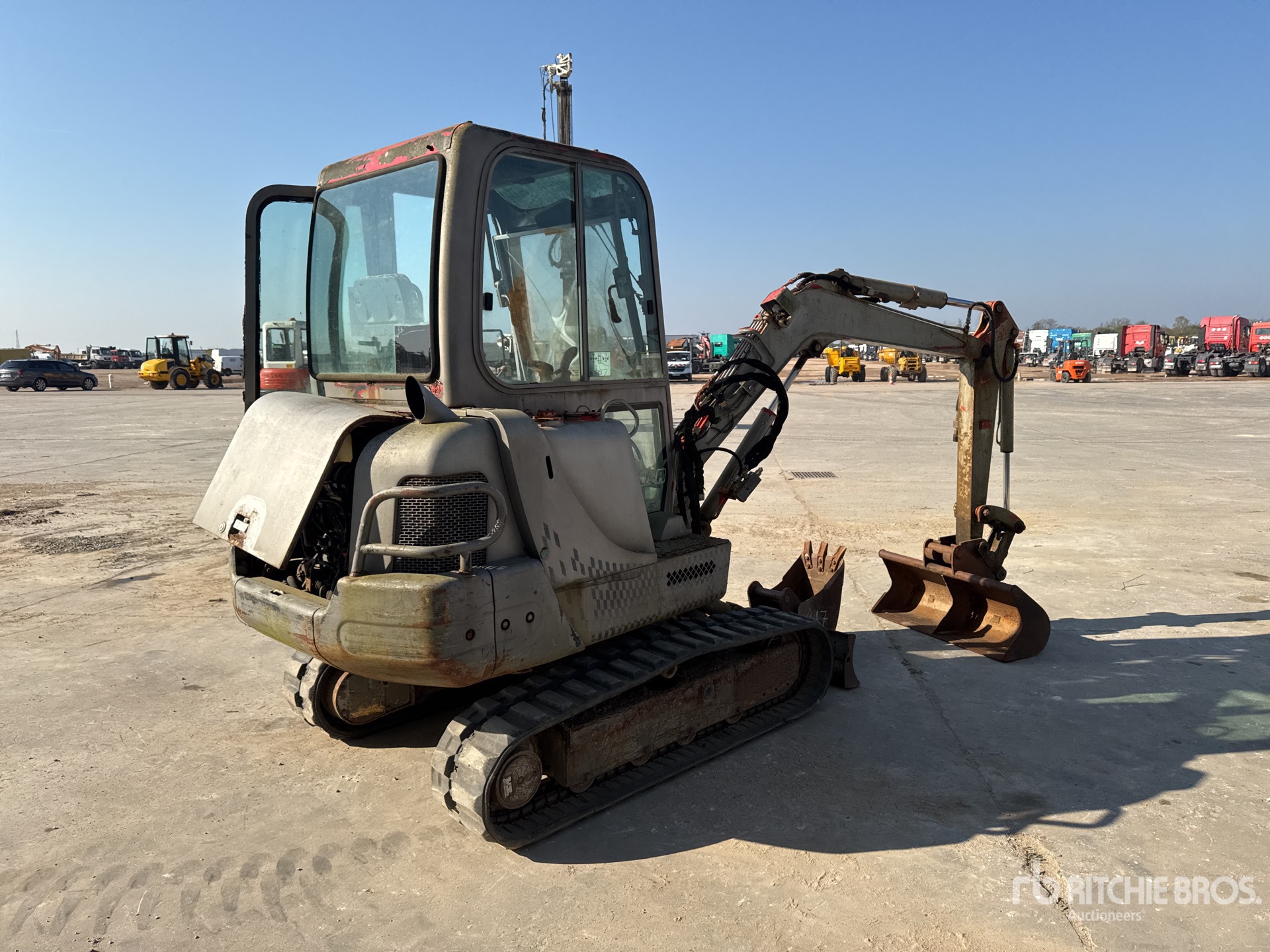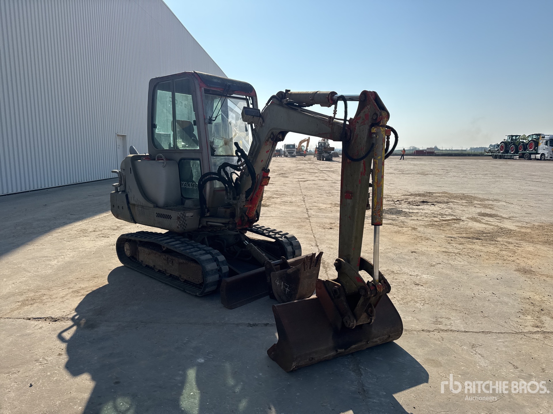 Enclosed Cab, Swing Boom, 1100 mm Stick, Auxiliary Hydraulic Plumbing, Boom Check Valves, Backfill Blade, 300 mm Rubber Tracks, 1000 mm Cleanup Bucket, Additional 300 mm Digging Bucket