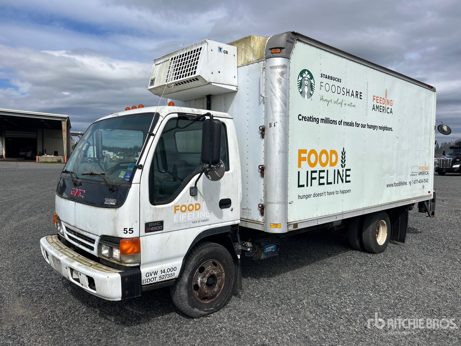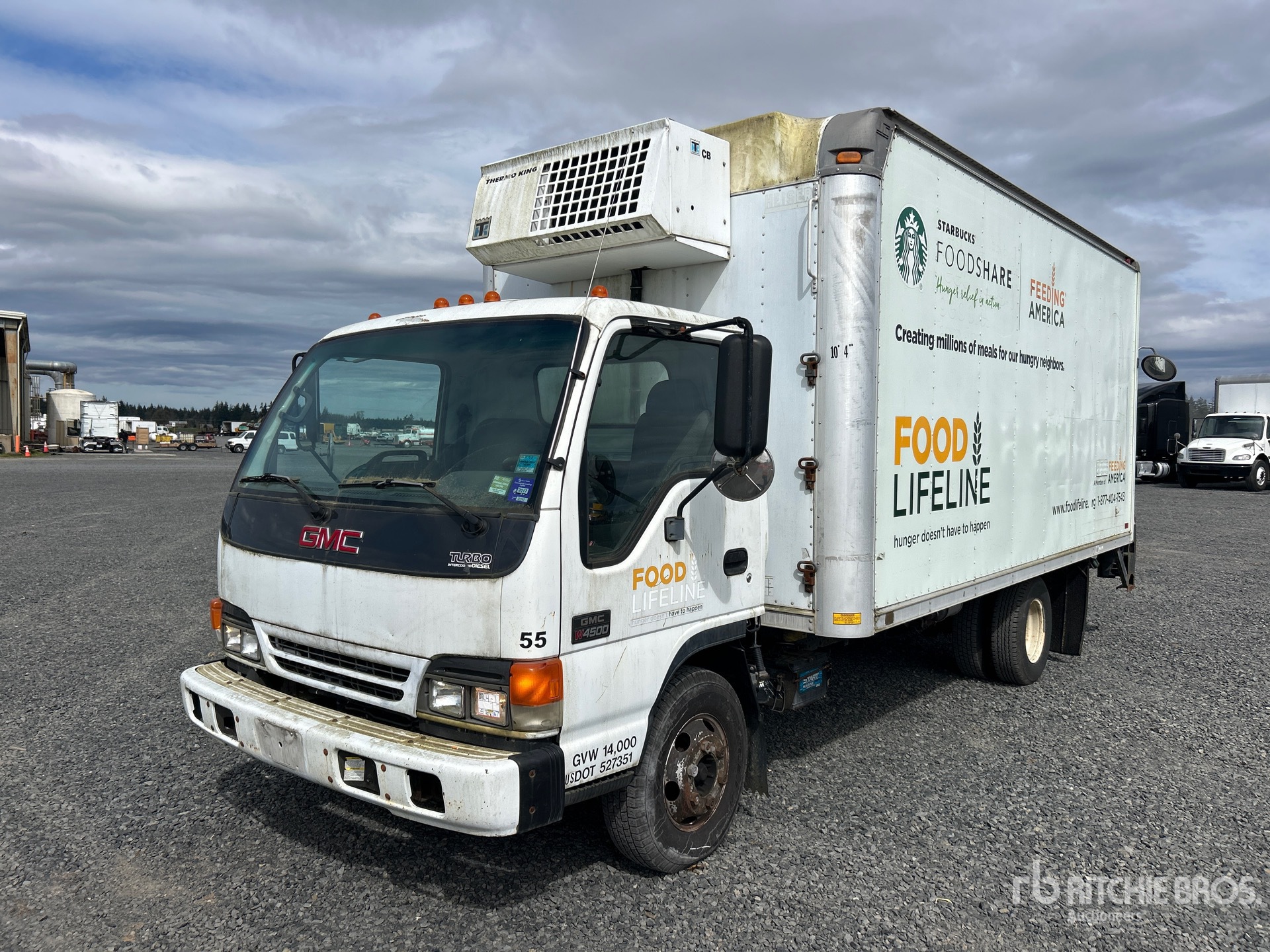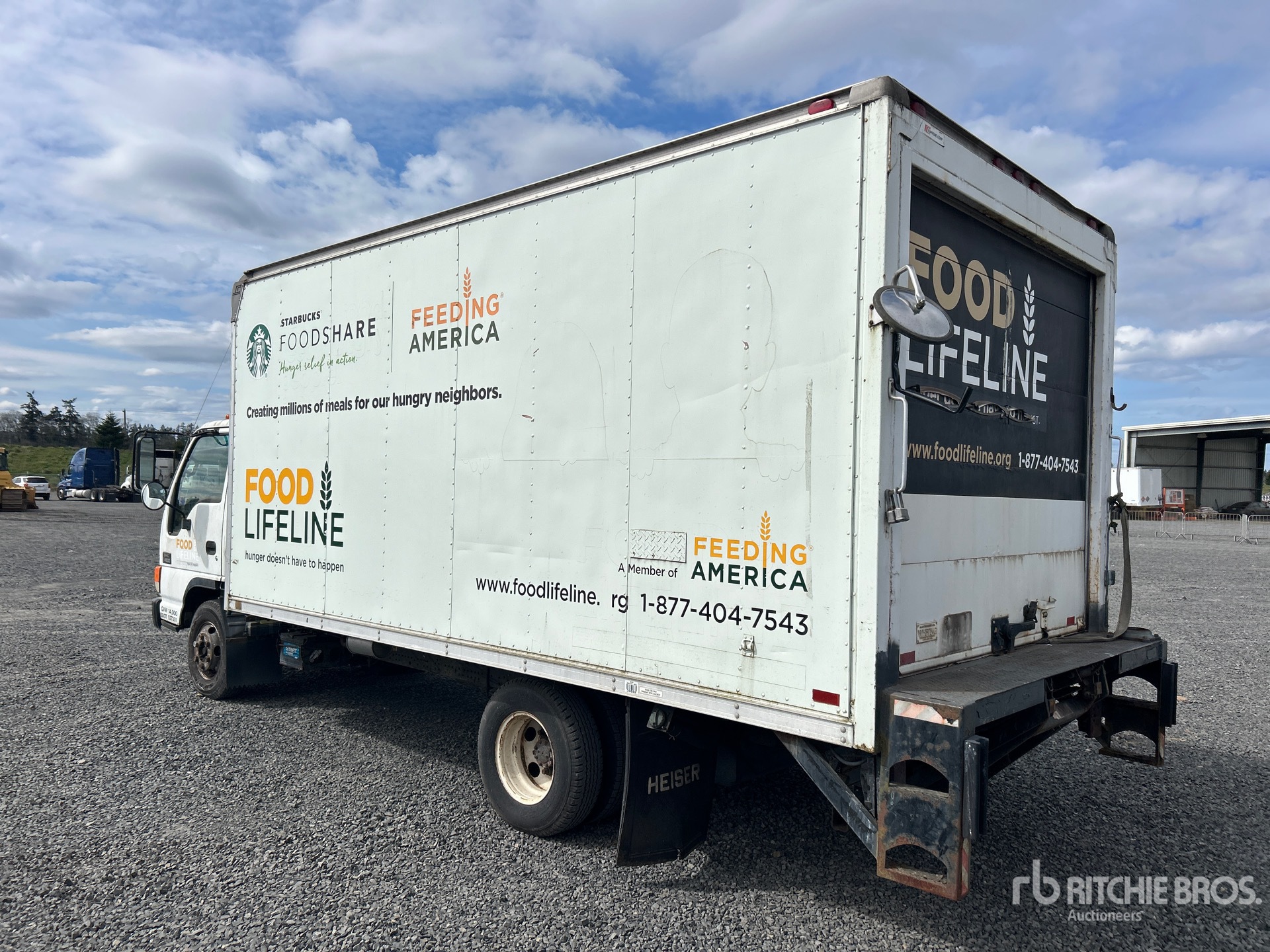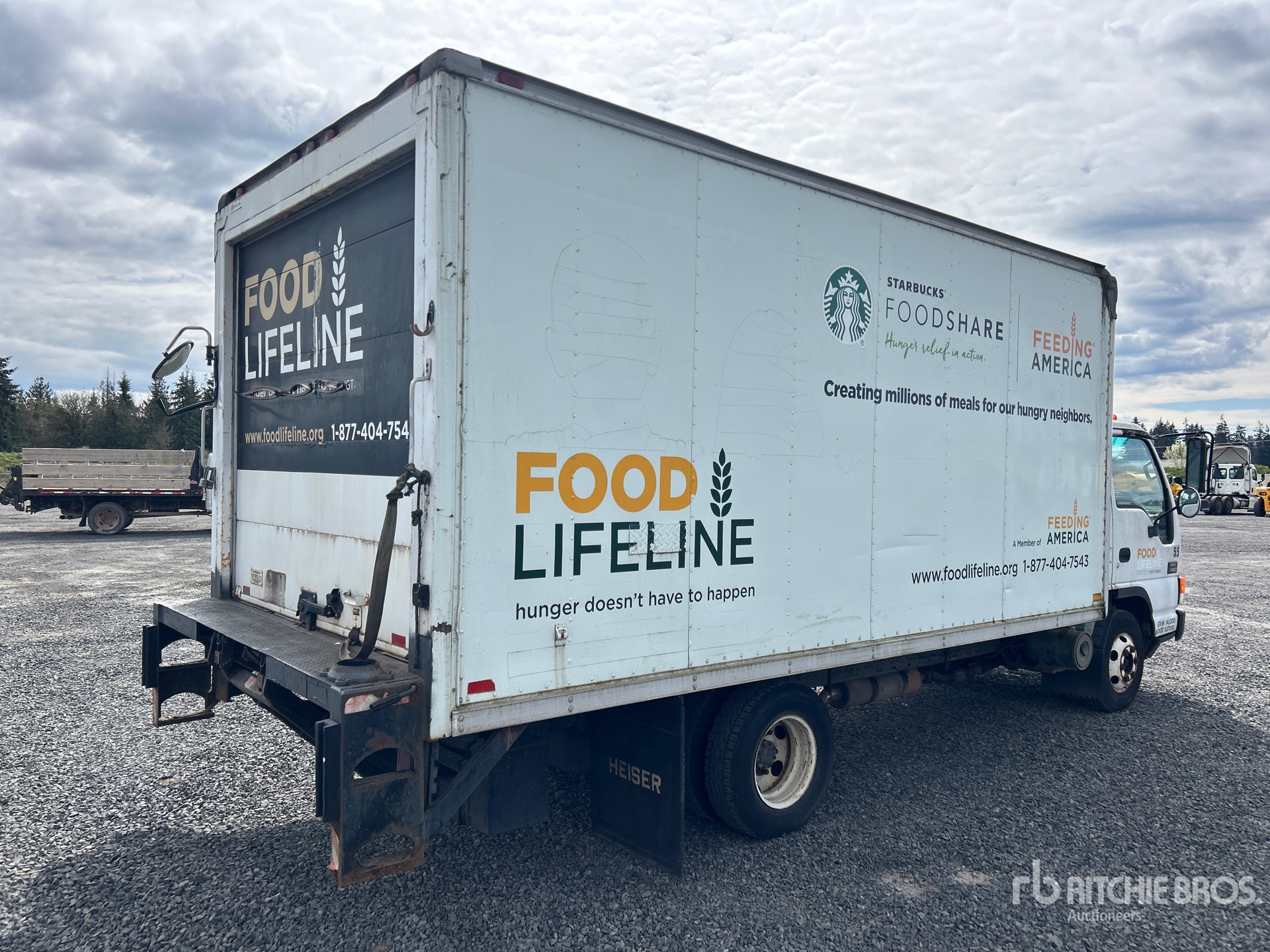 Isuzu 4 Cylinder 317 cid Diesel 190 hp Engine, 2004 US EPA Label, Automatic Transmission, 5360 lb Front Axle, 9880 lb Rears, 14500 lb GVWR, 215/85R16, Spring Suspension, 153 in Wheelbase, Thermo King CB 20 Reefer Unit, Keiser 16 ft x 96 in Wide x 76 in High Body, Liftgate