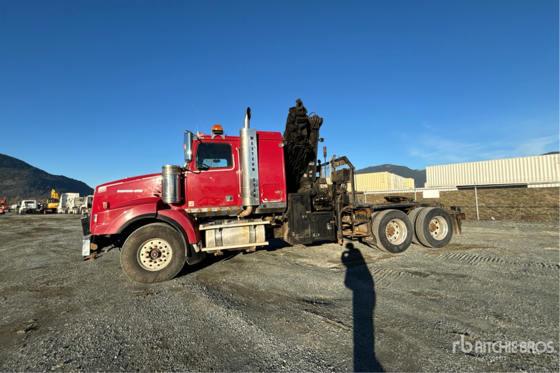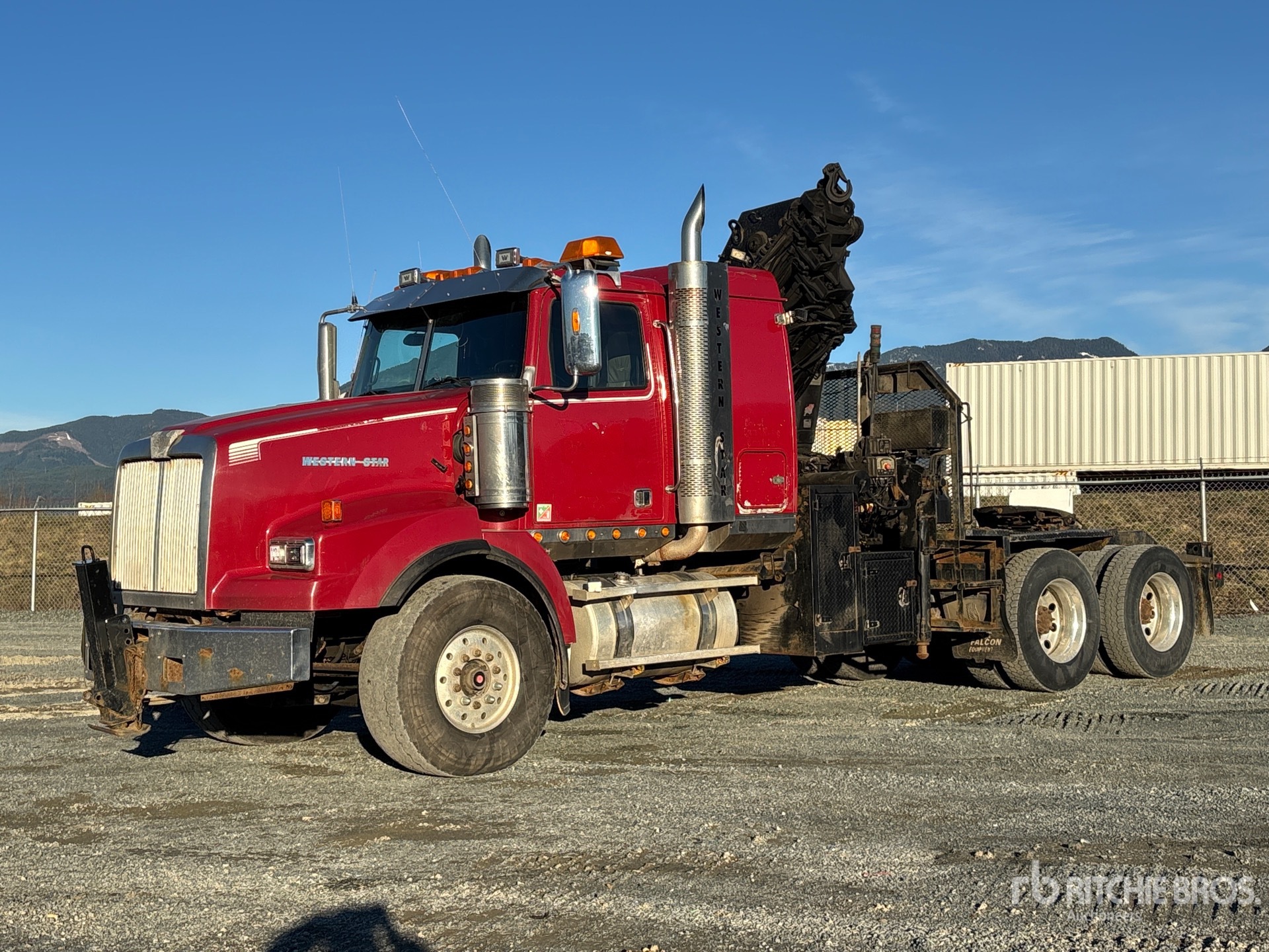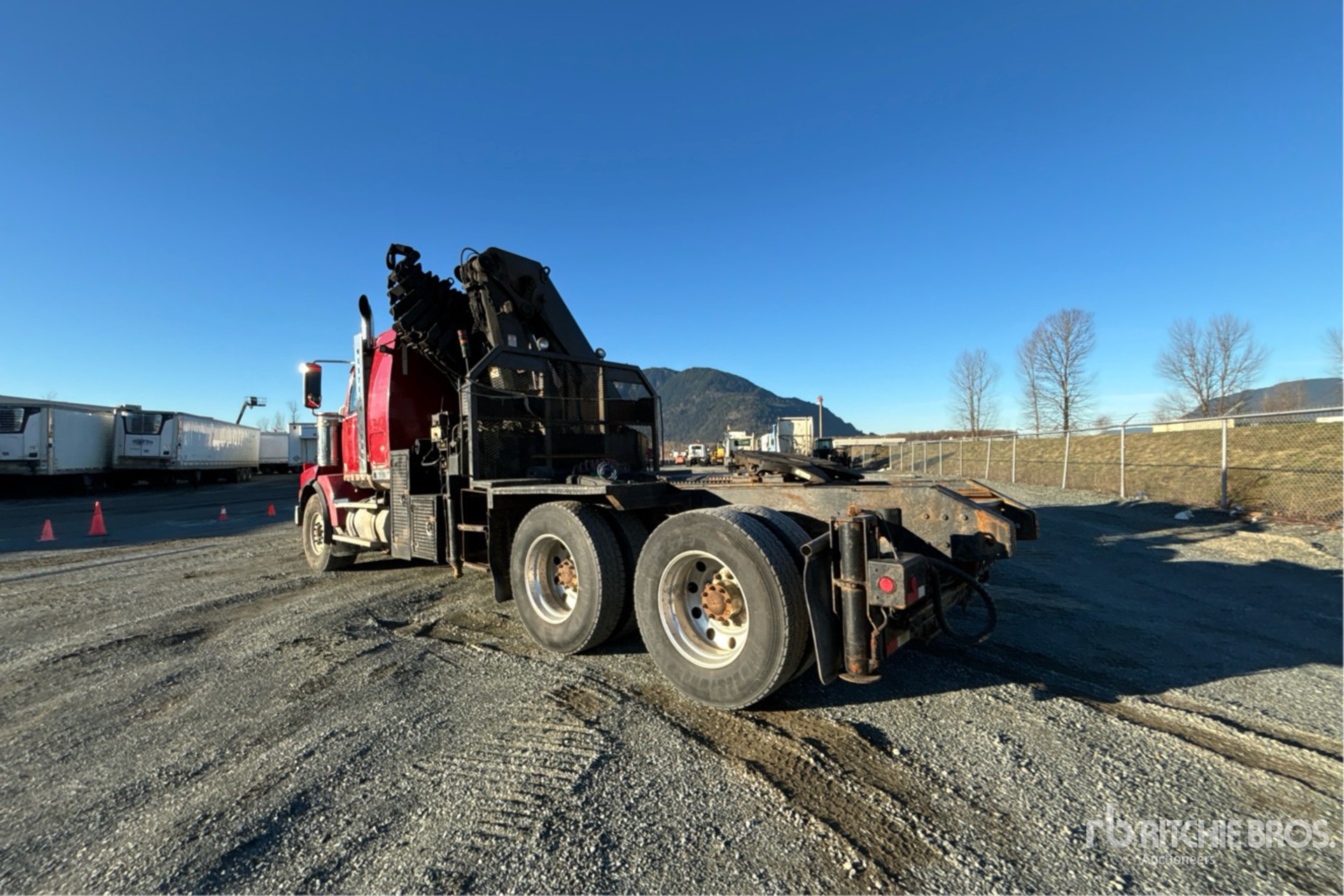 Cat C15 6 Cylinder 15.0 L Diesel 550 hp Engine, 27162 Engine hrs, Eaton Fuller RTLO-18918B 18-Speed Manual Transmission, Double Differential Locks, 20000 lb Front Axle, 46000 lb Rears, Meritor RT-46-164P Drive Axles, 4.10:1 Axle Ratio, 66000 lb GVWR, 36 in Flat Top Sleeper Cab, Aluminum Wheels, 445/65R22.5 Front Tires, 11R24.5 Rear Tires, Airliner Air Ride Suspension, 244 in Wheelbase, PTO, 6.4 m - 23 m 8 Section Boom, Out and Down Outriggers, Rear Outriggers, 5th Outrigger, Remote Control w/Cord, 5570 Crane Hours