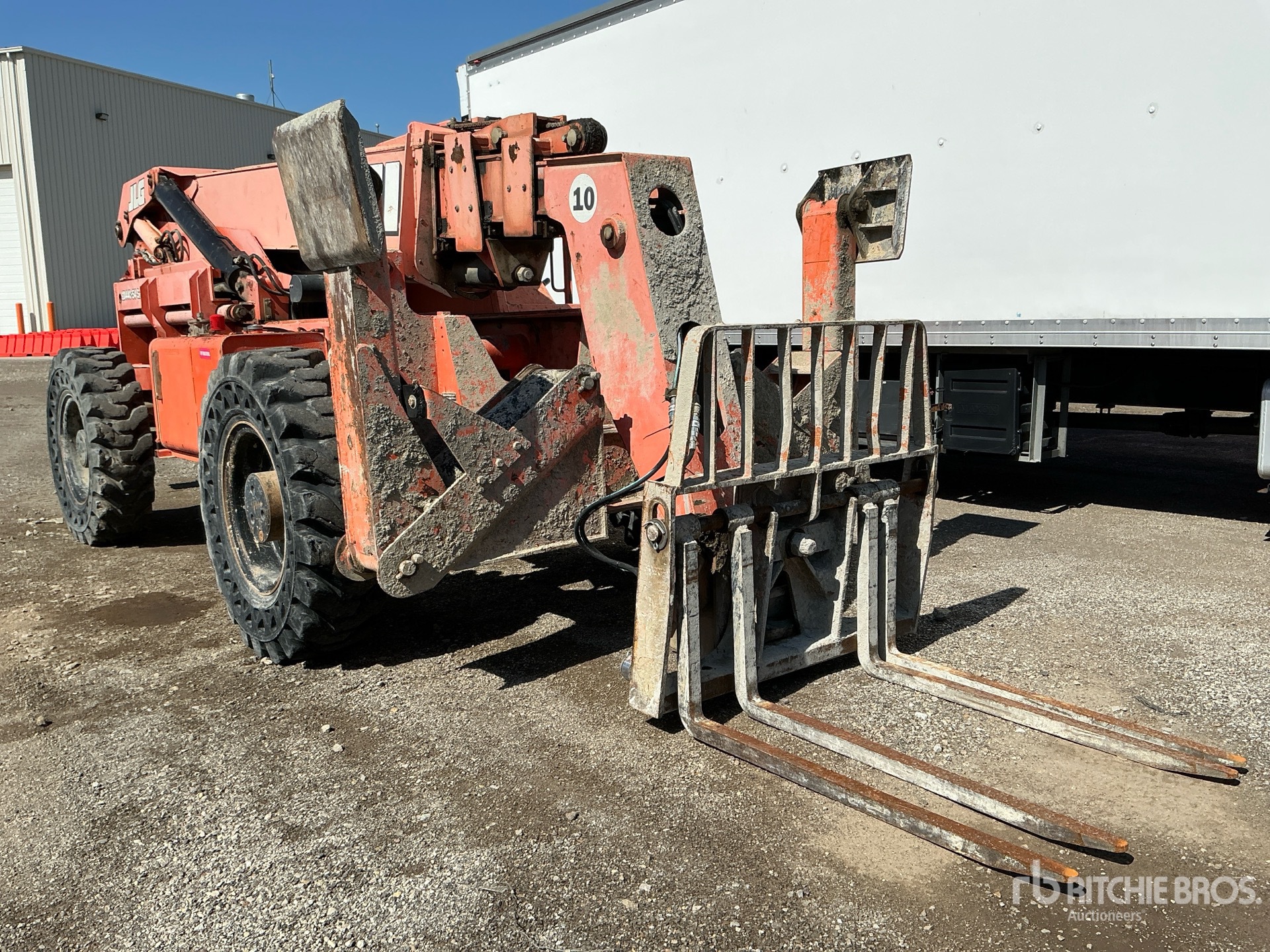 Located in Lane 33 Spot 12, Open Operator Station, 10000 lb Max Lift Capacity, 48 in Forks, Outriggers, 14.00-24 Solid Tires