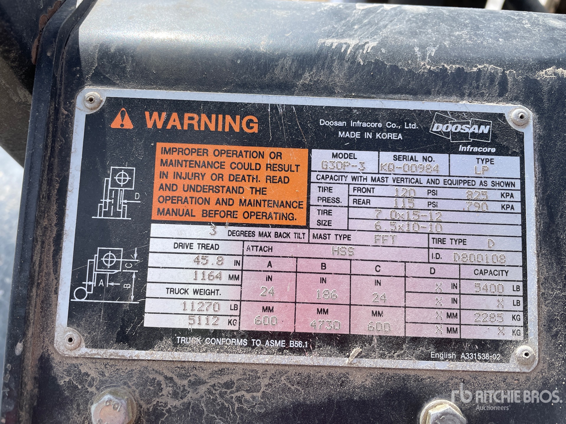 La información detallada del equipo tiene un ámbito limitado y Ritchie Bros. Auctioneers no ha inspeccionado ningún aspecto ni componente del equipo distinto de los expuestos expresamente aquí. A menos que se indique expresamente, no realizamos declaraciones ni ofrecemos garantías, expresas o implícitas, con respecto al equipo o a sus componentes, incluidas, entre otras, representaciones o garantías relativas a la funcionalidad, la conformidad o el cumplimiento de normativas de seguridad de autoridades u órganos reguladores competentes, así como tampoco sobre la aptitud para cualquier propósito particular o para fines de comercialización. Te aconsejamos que realices tu propia inspección detallada del equipo antes de la subasta.