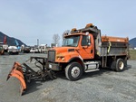 Cat 6 Cylinder 8.8 L Diesel Engine, 6900 Engine hrs, Automatic Transmission, 18000 lb Front Axle, 23000 lb Rears, 41000 lb GVWR, Aluminum Front Wheels, 315/80R22.5 Front Tires, 11R22.5 Rear Tires, Spring Suspension, 176 in Wheelbase, Dual PTO, Hydraulic System, Monroe 11 ft 2-Way Plow, Henderson Steel Slide-In Spreader, 2 Spinners, In-Cab Controls, Danco 12 ft Long x 3 ft 4 in High Steel Body, Air Powered Roll Tarp