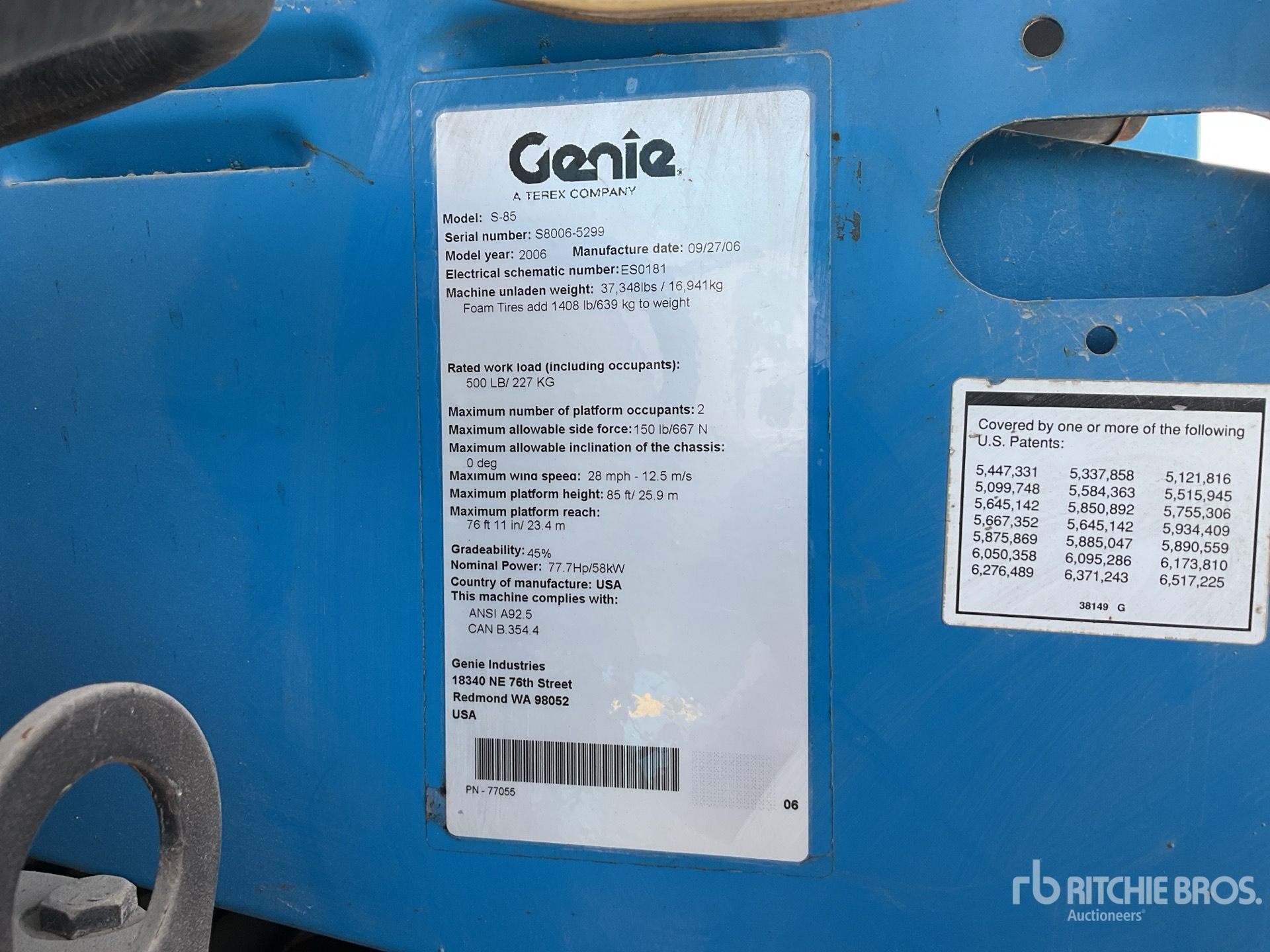 25.9 m Max Platform Height, 227 kg Max Weight Capacity, Jib, Extendable Axles, Power to Platform, 2006 US EPA Label, Deutz 4 Cylinder Diesel Engine