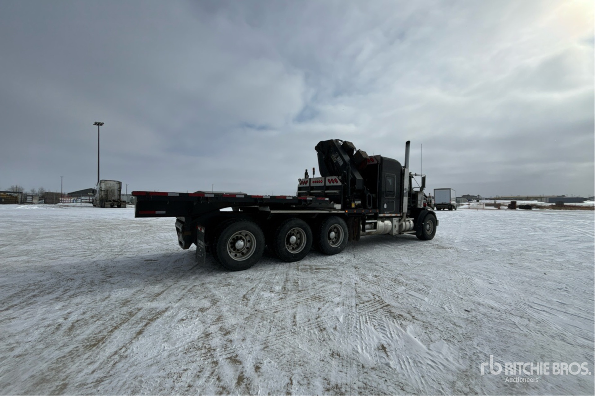 Cummins ISX 6 Cylinder Diesel 565 hp Engine, 2006 US EPA Label, Webasto Engine Coolant Heater, 10126 Engine hrs, Engine Brake, Eaton Fuller RTLO-18918B 18-Speed Manual Transmission, Triple Differential Locks, 18740 lb Front Axle, 69000 lb Rears, Air Ride Cab, 50 in Flat Top Sleeper Cab, Aluminum Wheels, 425/65R22.5 Front Tires, 11R24.5 Rear Tires, Neway Air Ride Suspension, 266 in Wheelbase, 3.1 m - 15.4 ft 6 Section Boom, Straight Down Outriggers, Remote Control w/Cord, 2008 Hiab 422 EP-5 12000 kg Crane, 14 ft 9 in x 96 in Bed