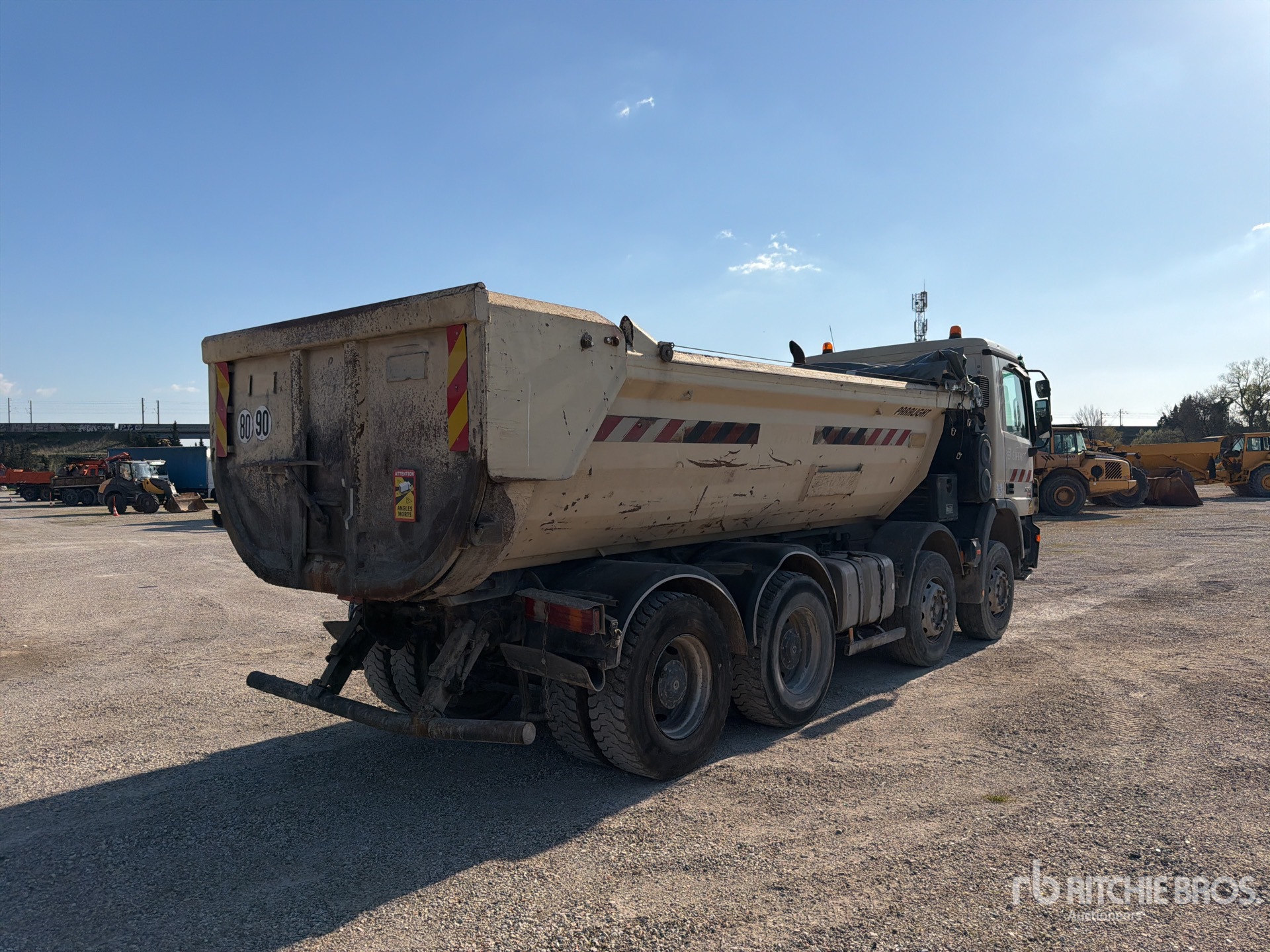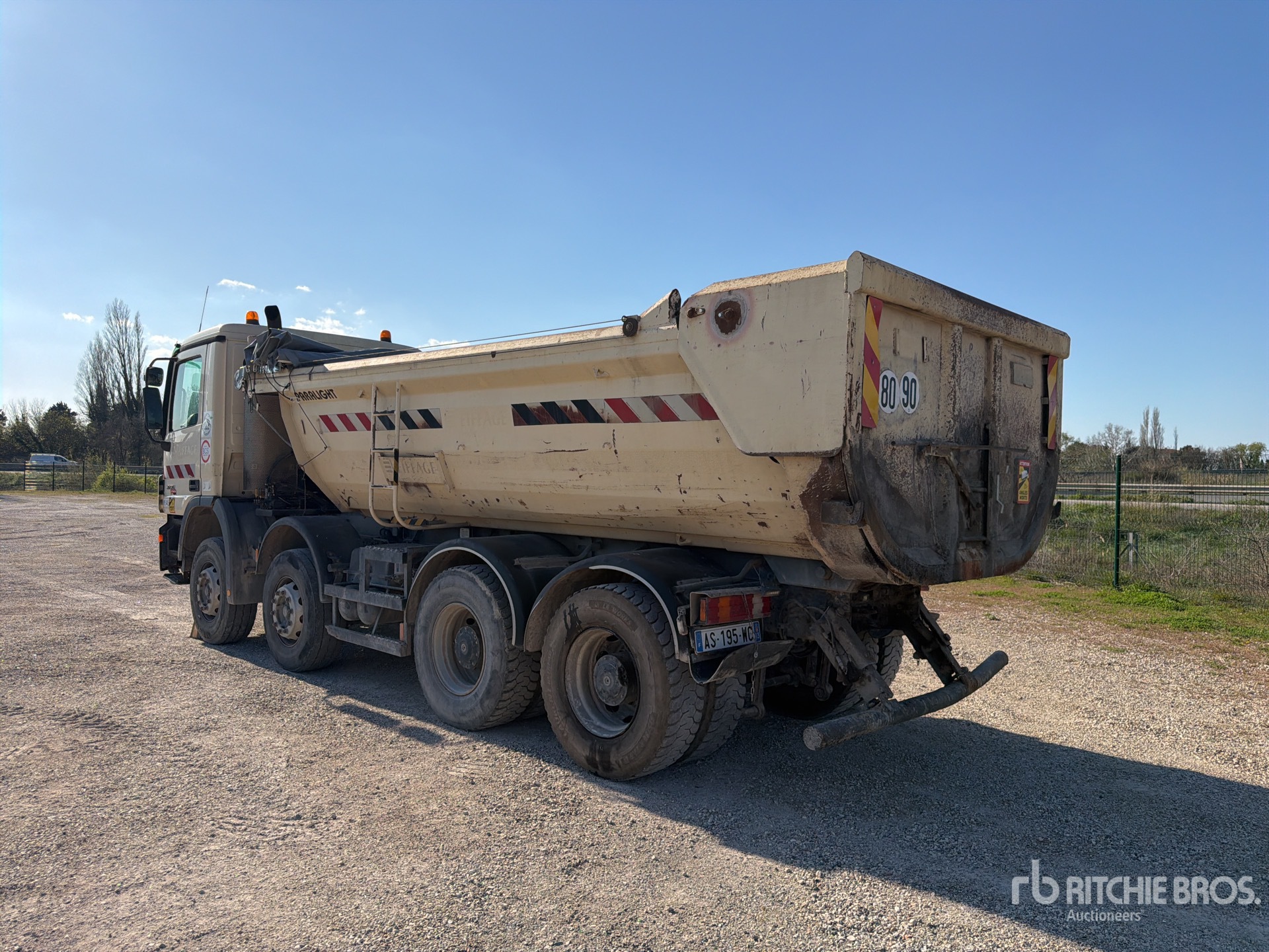 Mercedes 6 Cylinder Engine, Retarder, Automated Transmission, 315/80R22.5, Spring Suspension, Manjot 5000 mm Long Steel Body, Manual Roll Tarp, High-Lift Tailgate