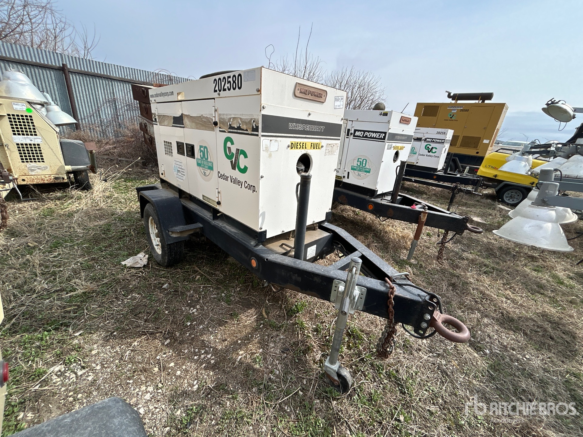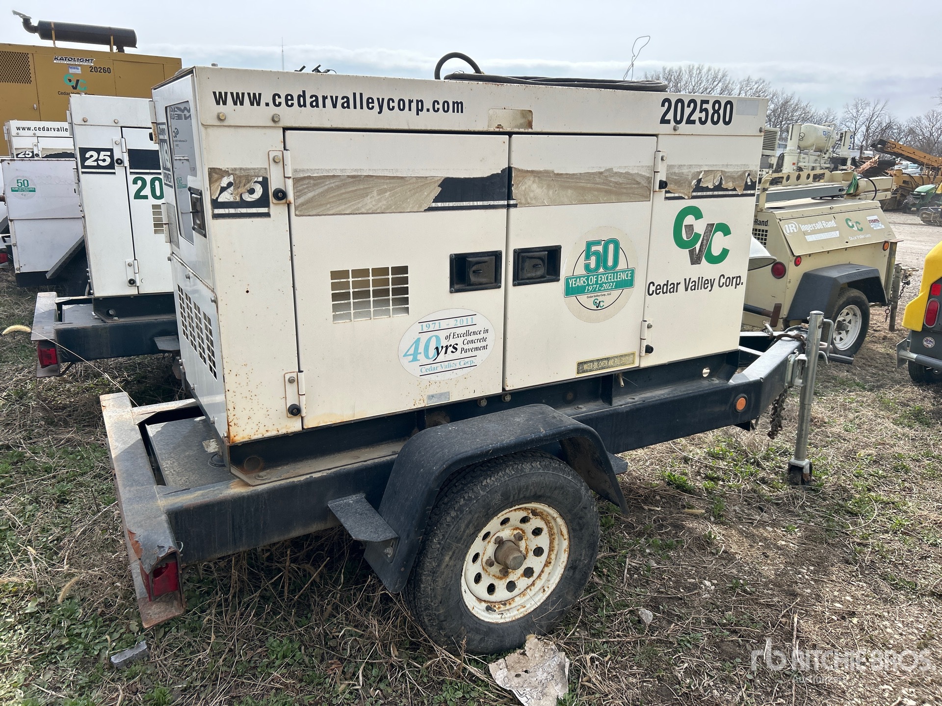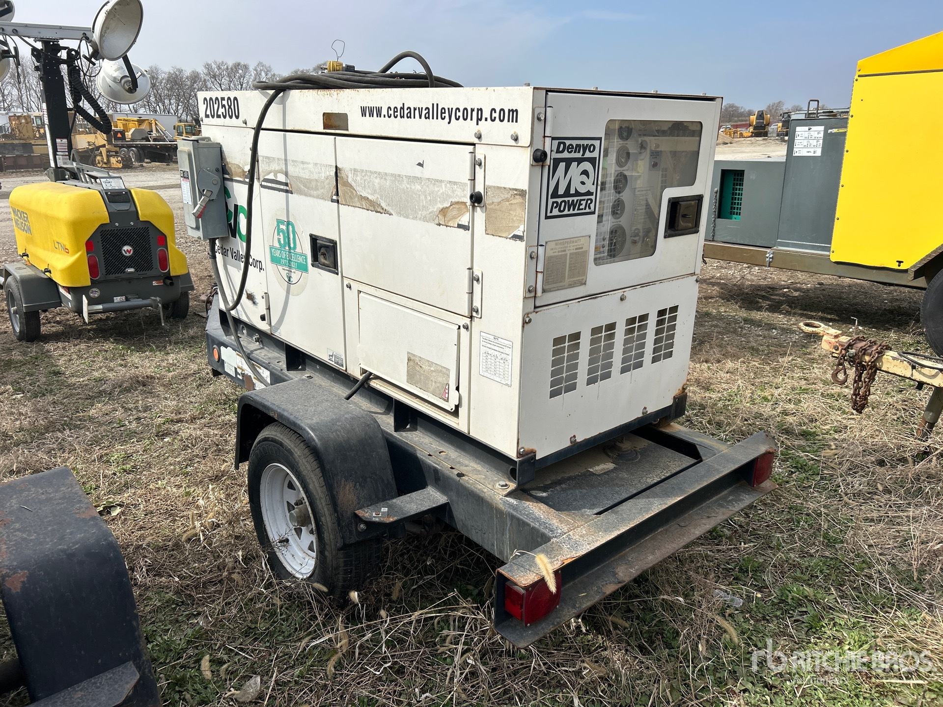 2006 US EPA Label, Isuzu AA-4LE2 4 Cylinder 2179 cc Diesel Engine, 25 kVA/20 kW Rated 3 Phase Output, 240 V / 480 V Rated Voltage, 14.4 kVA,/14.4 kW, Rated Single Phase Output, 240 V / 120 V Rated Voltage, 240 V & 120 V Receptacles, Sound Attenuated, Bottom Mounted Fuel Tank, Lunette Ring Carrier Trailer