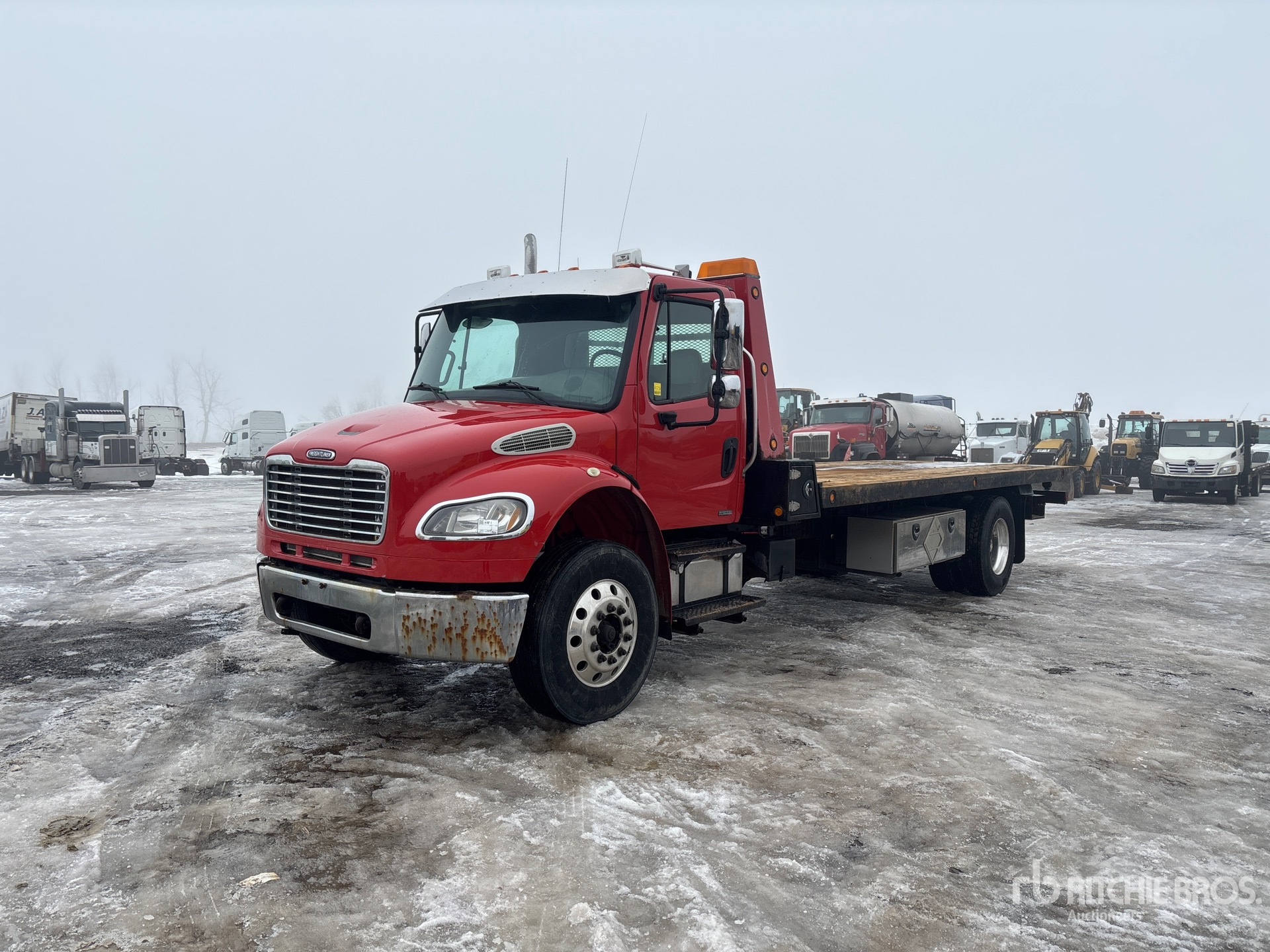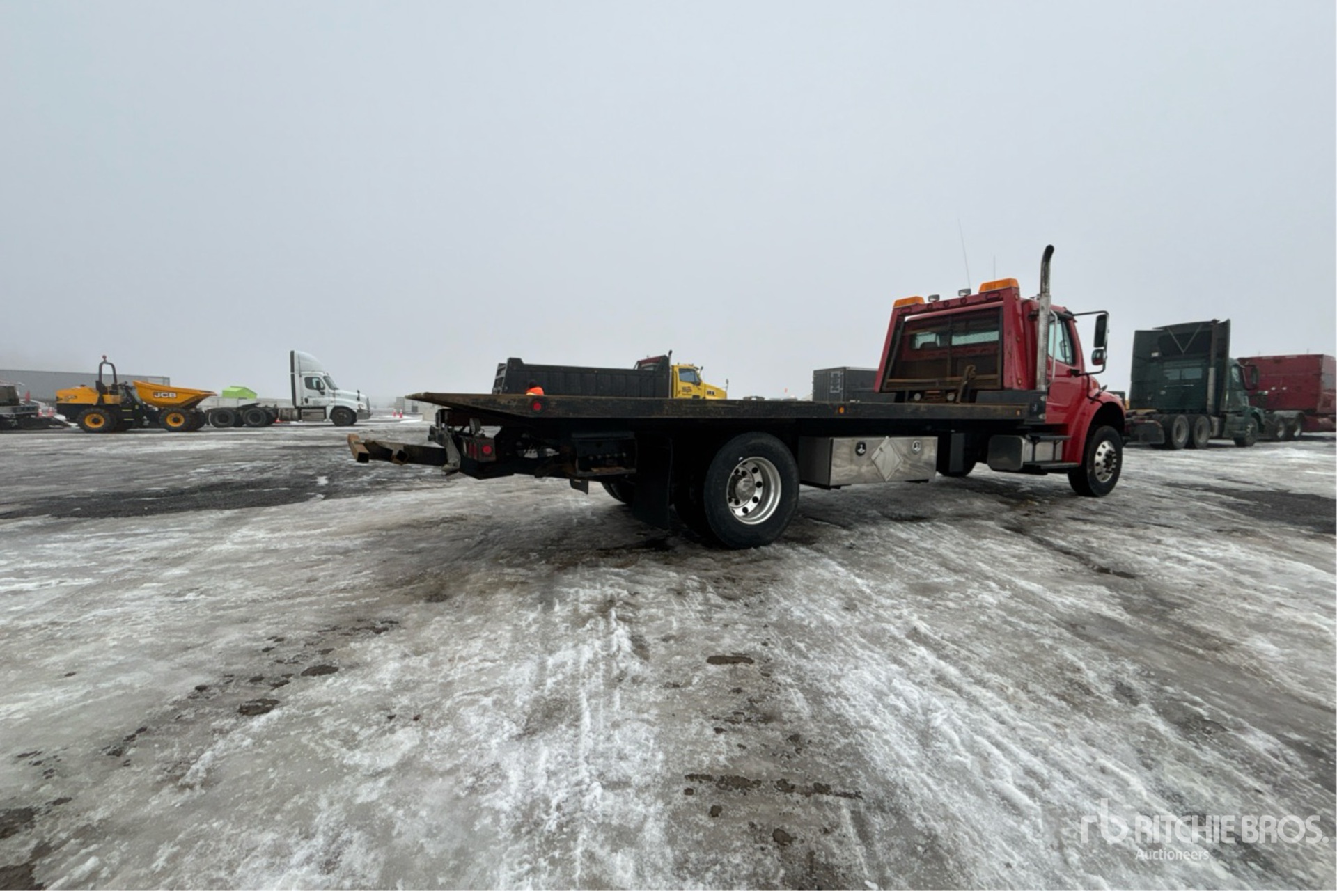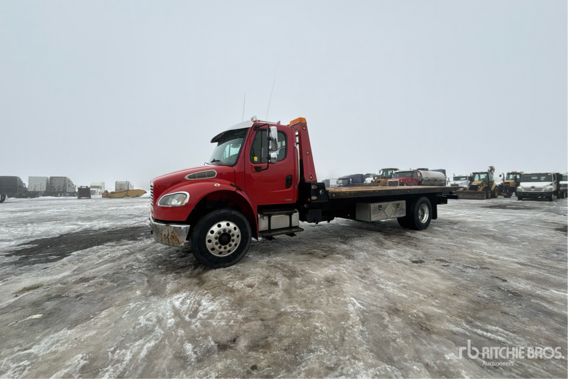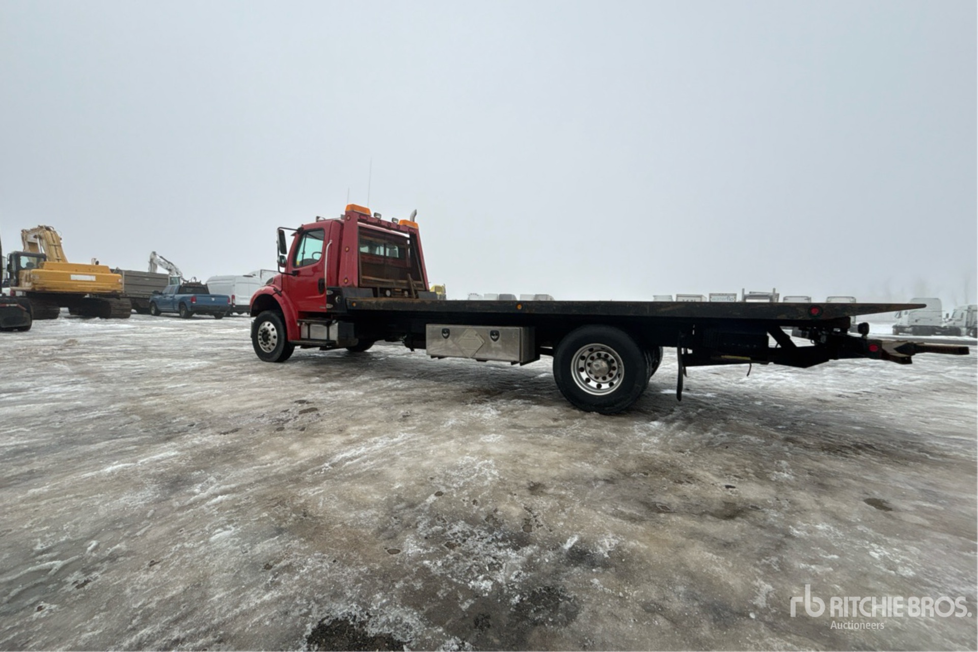 Mercedes-Benz 6 Cylinder Diesel Engine, 37365 Engine hrs, Engine Brake, Eaton Fuller RTO-11908LL 8LL Manual Transmission, 12350 lb Front Axle, 23000 lb Rears, 3.91:1 Axle Ratio, 35350 lb GVWR, Air Ride Cab, Aluminum Wheels, 11R22.5, Air Ride Suspension, 244 in Wheelbase, PTO, 21 ft 6 in x 102 in Bed, Winch, Hydraulic Wheel Lift
