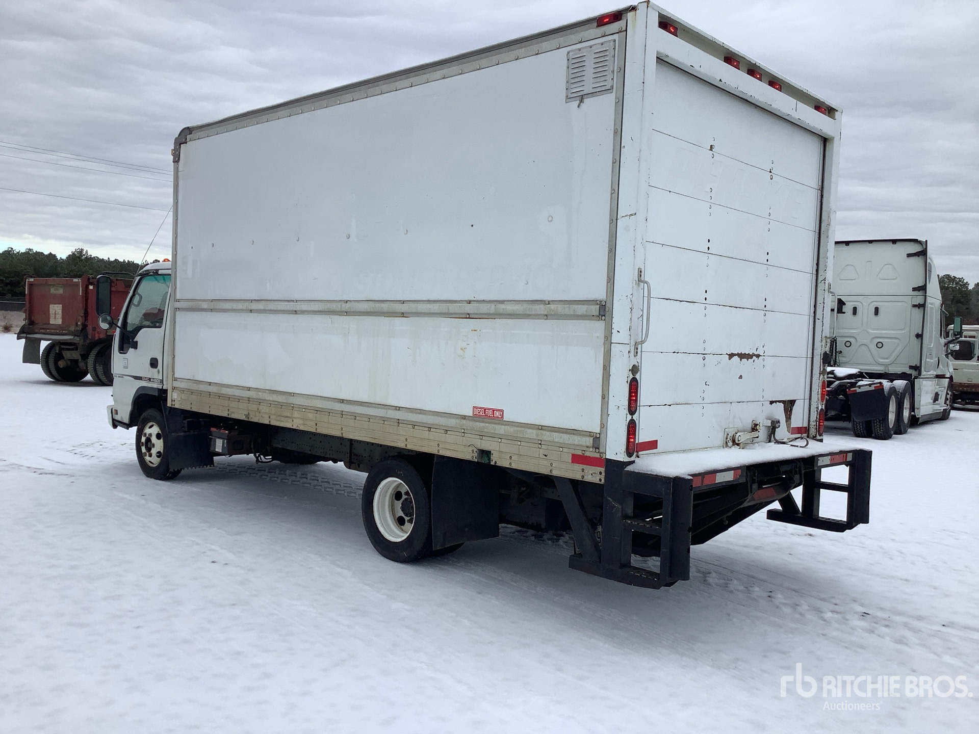 Isuzu 4 Cylinder 5.2 L Diesel 190 hp Engine, 2006 US EPA Label, Automatic Transmission, 5360 lb Front Axle, 9880 lb Rears, 14500 lb GVWR, 225/75/16, Spring Suspension, 150 in Wheelbase, 16 ft x 96 in Wide x 98 in High Body, Liftgate