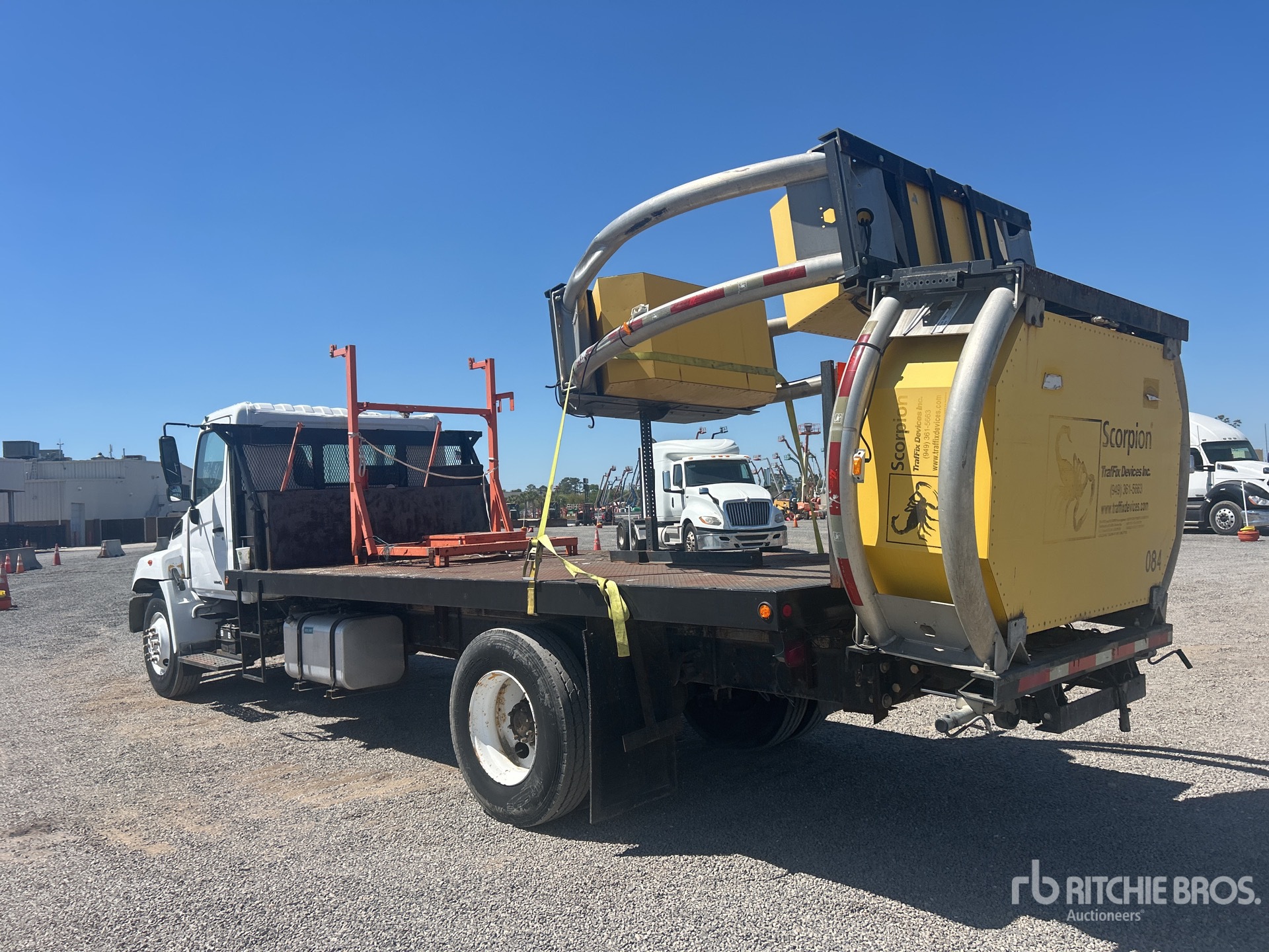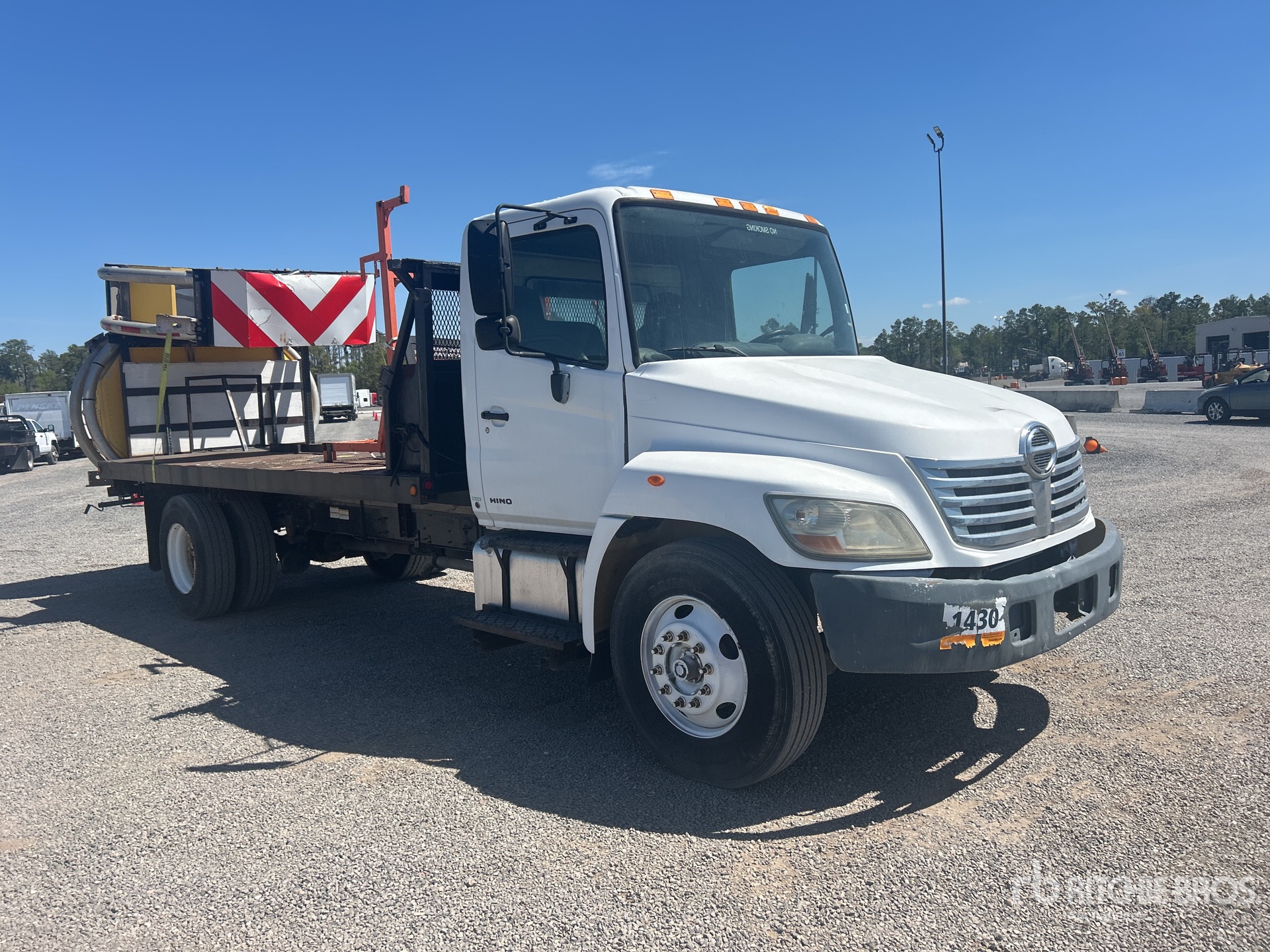 Hino J08E-TA 6 Cylinder 469 cid Diesel 225 hp Engine, 2008 US EPA Label, Automatic Transmission, 11R22.5, Spring Suspension, 220 in Wheelbase, Flatbed