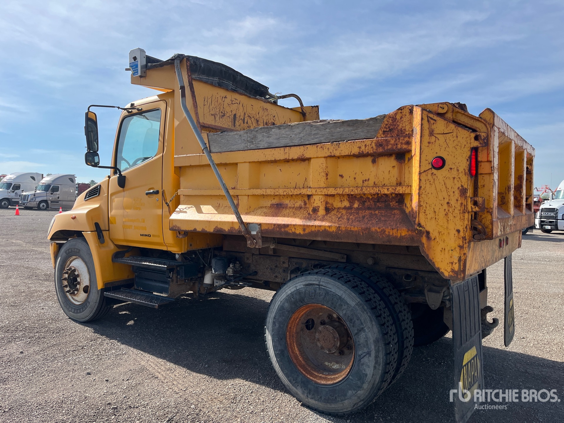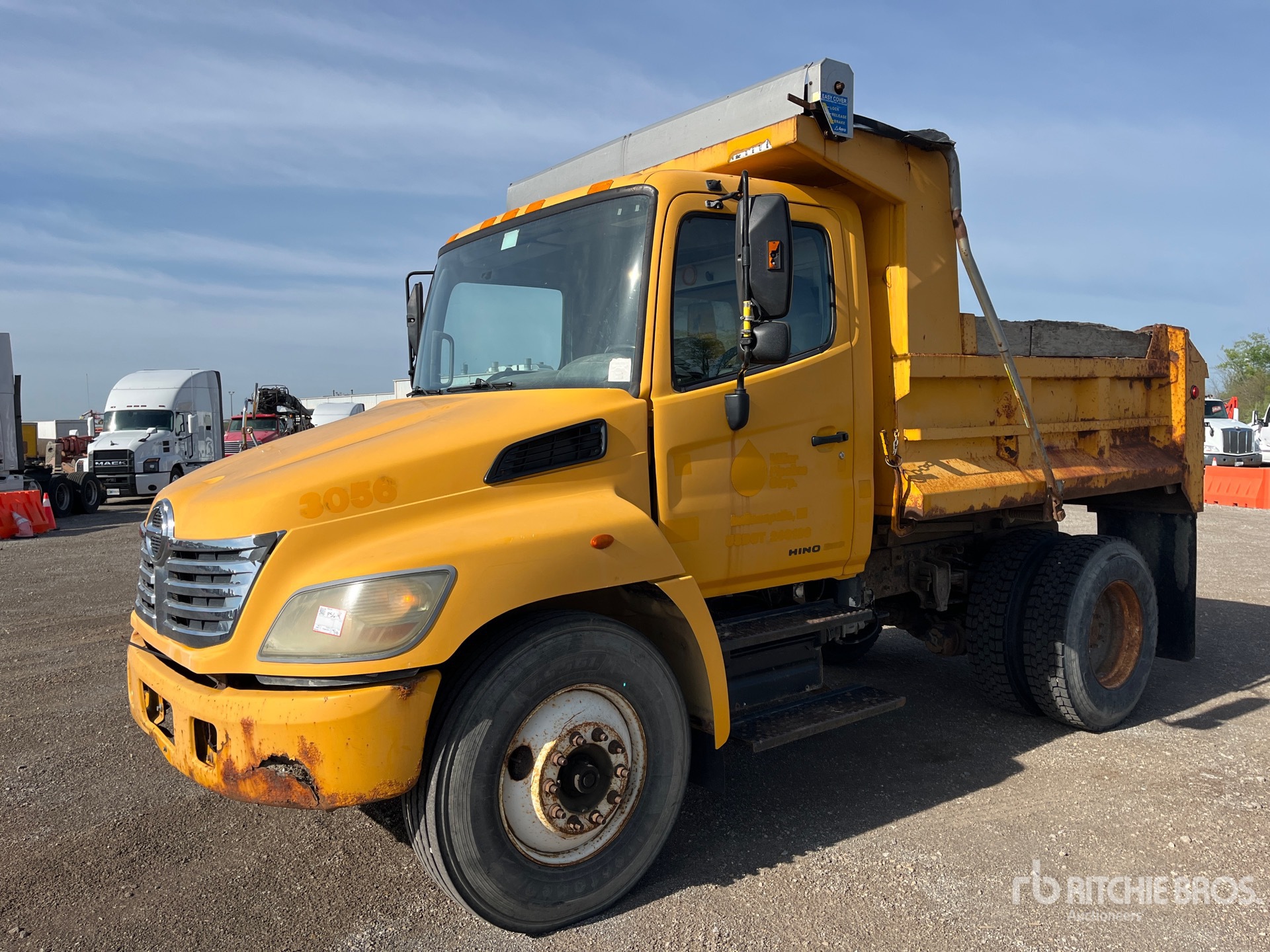 6 Cylinder Diesel Engine, 2006 US EPA Label, Allison Automatic Transmission, 12000 lb Front Axle, 21000 lb Rears, 33000 lb GVWR, Spring Suspension, PTO, 9 ft Long Steel Body, Manual Roll Tarp, Pintle Hitch