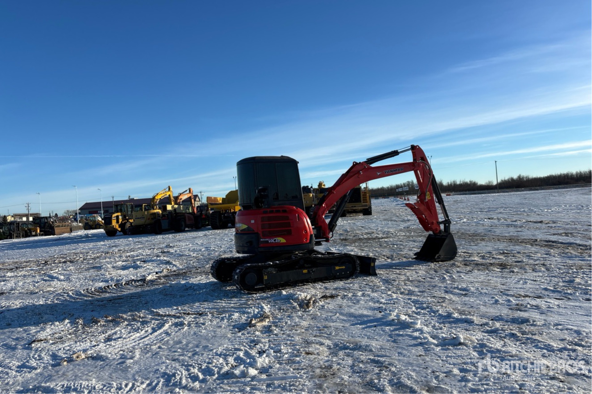 Enclosed Cab, Air Conditioner, 2009 US EPA Label, Swing Boom, 5 ft 8 in Stick, Backfill Blade, 16 in Triple Grouser Track Shoes, 26 in Digging Bucket, Hydraulic Thumb