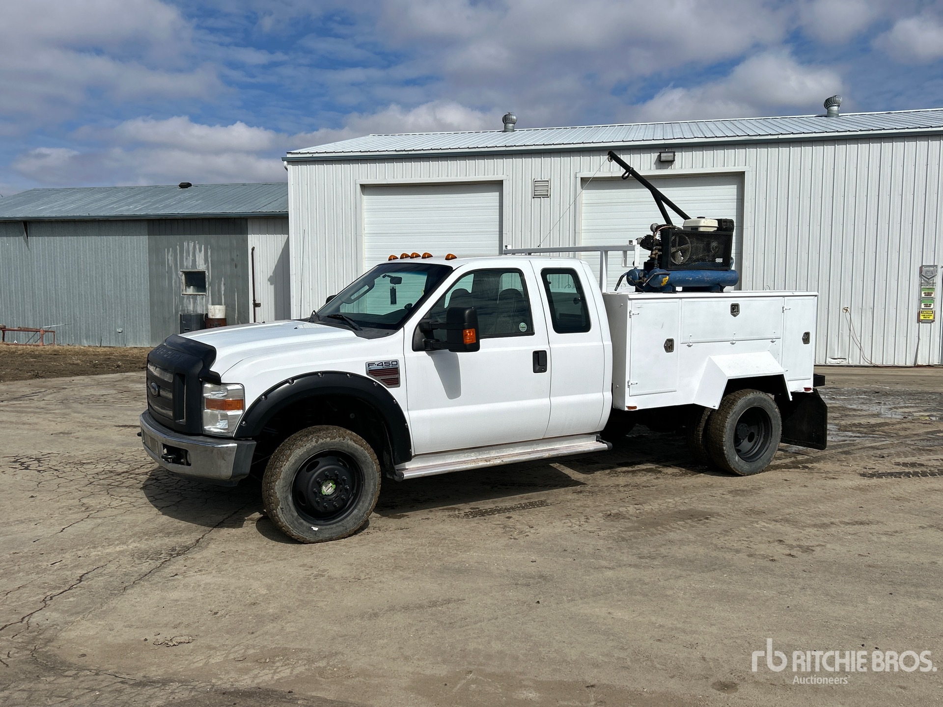 V8 Diesel Engine, Automatic Transmission, 225/70R19.5, Spring Suspension, 8 ft Body, Eagle 18.5 cfm Gasoline Air Compressor, Bully Dog Tuner, 2000 lb Elec Winch Crane w/ Remote
