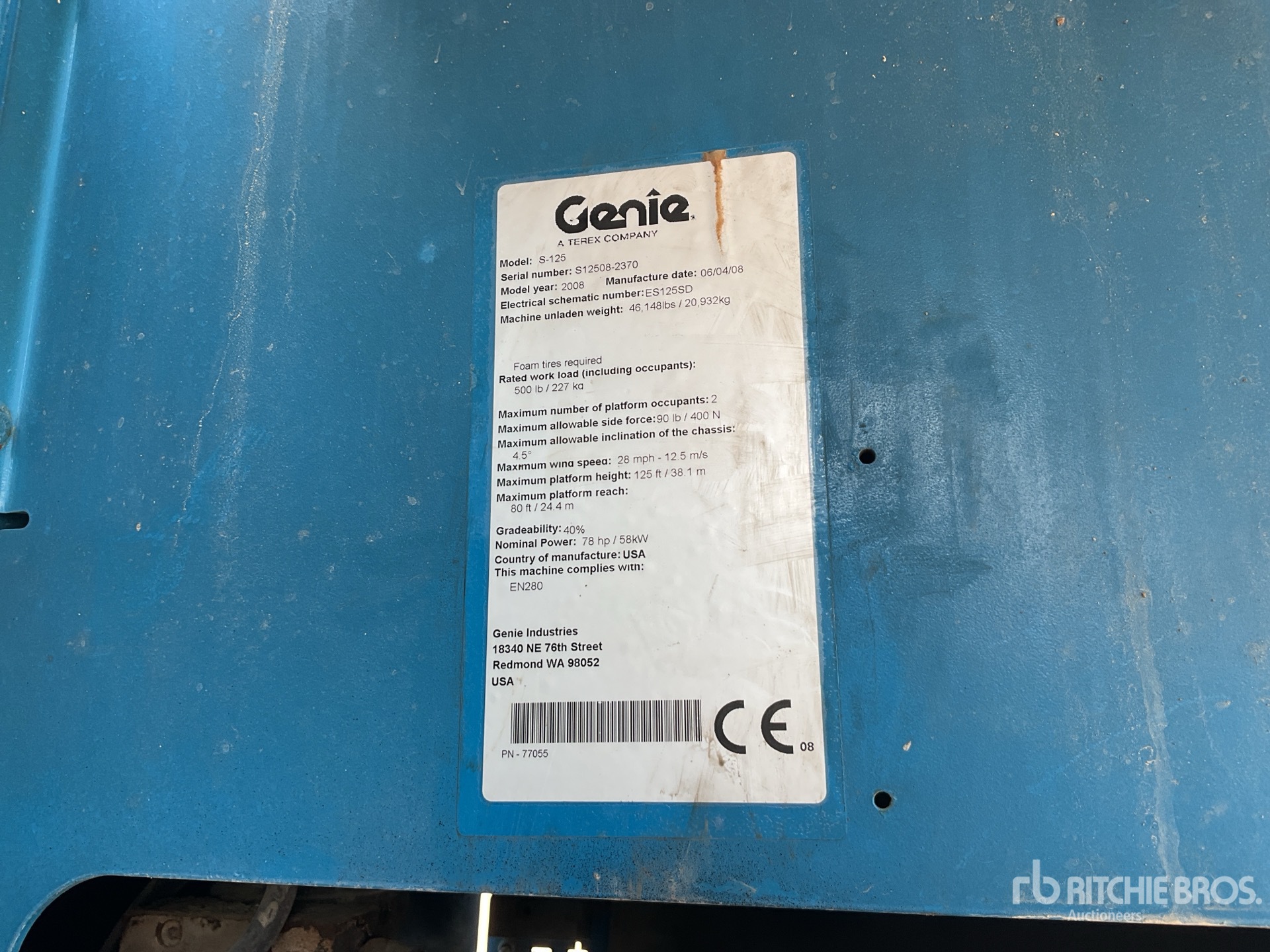 38.1 m Max Platform Height, 227 kg Max Weight Capacity, Jib, Power to Platform, 2008 US EPA Label, Deutz 4 Cylinder Diesel Engine