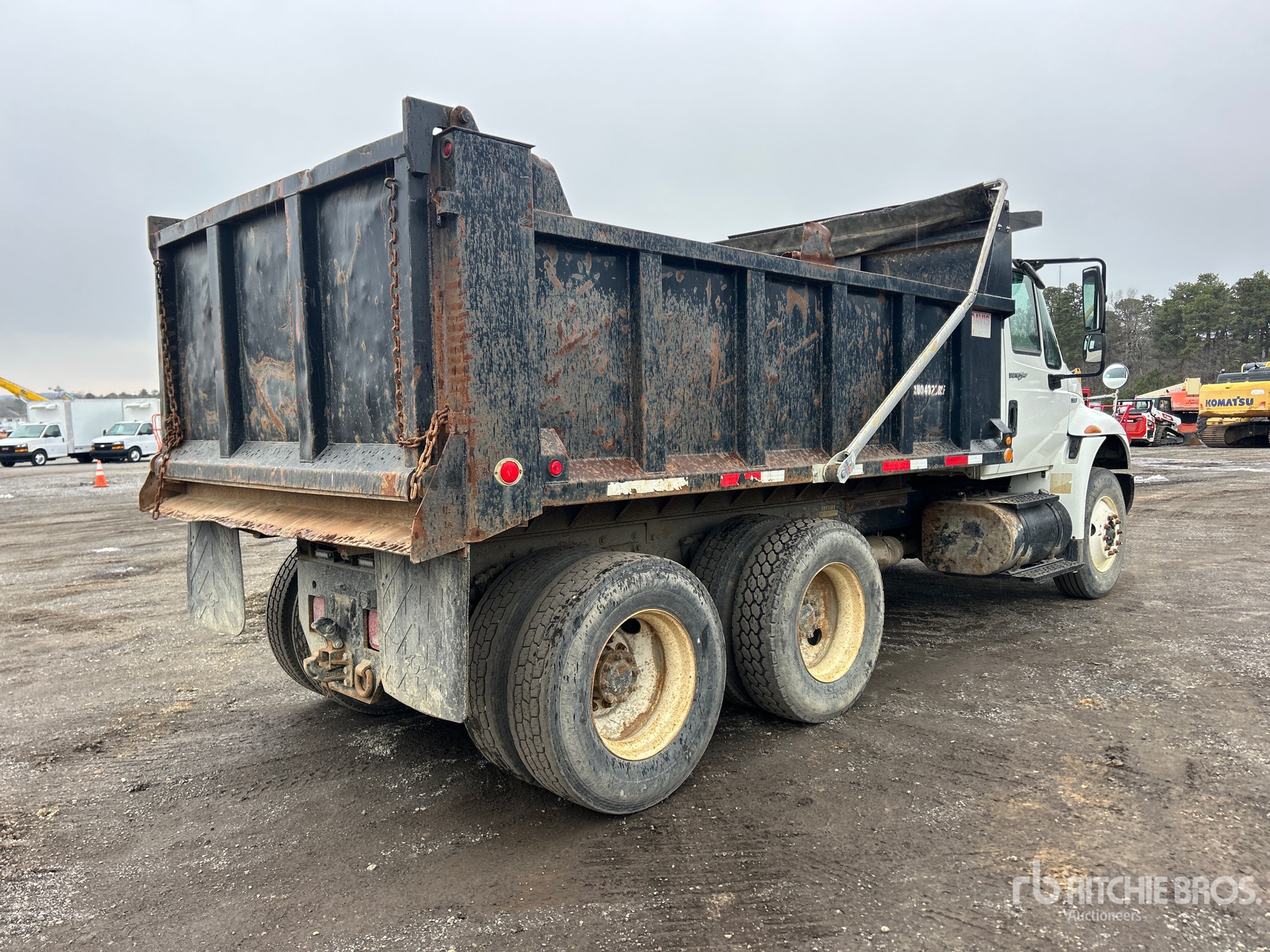 International 6 Cylinder Diesel Engine, 10399 Engine hrs, Allison Automatic Transmission, 12000 lb Front Axle, 40000 lb Rears, 52000 lb GVWR, 11R22.5 Front Tires, 295/75R22.5 Rear Tires, Davis 13 ft 10 in Long x 37 in High Steel Body, Electric Roll Tarp, Ringfeder