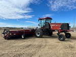 Enclosed Cab, Air Conditioner, Air Ride Seat, Hydrostatic Drive, 2010 US EPA Label, CARB Compliant, 560/85R26 Front Tires, 14L-16.1SL Rear Tires, Header S/N - YAZB01049, Case IH DH362 36 ft Draper Header, Split P/U Reel, Hydraulic Fore & Aft, Double Knife Drive, Center Delivery, Gauge Wheels, Swath Roller