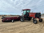 Enclosed Cab, Air Conditioner, Air Ride Seat, Hydrostatic Drive, 2010 US EPA Label, CARB Compliant, 460/85R26 Front Tires, 14L-16.1SL Rear Tires, Header S/N - YAZB01048, Case IH DH362 36 ft Draper Header, Split P/U Reel, Hydraulic Fore & Aft, Double Knife Drive, Center Delivery, Gauge Wheels, Swath Roller