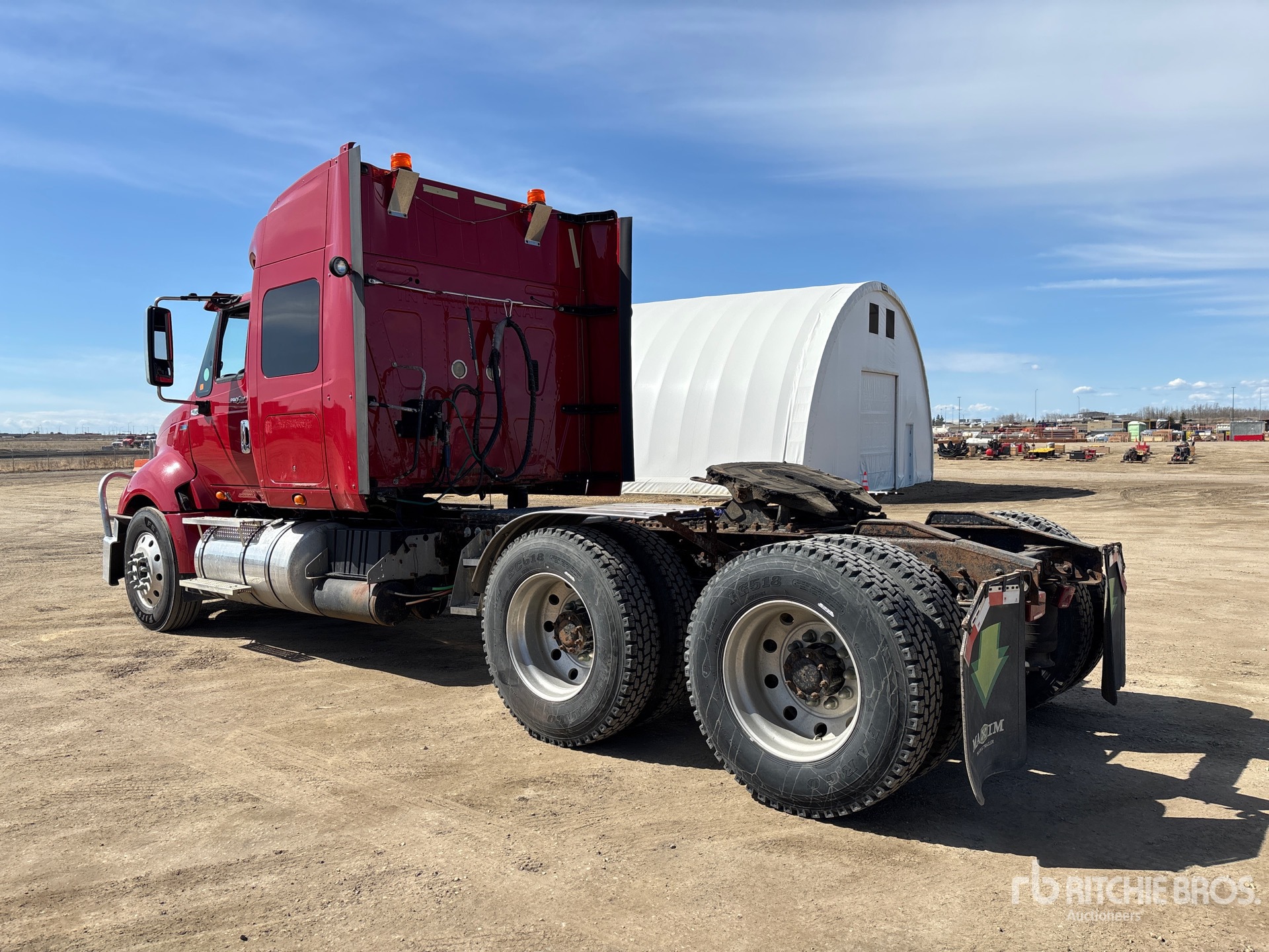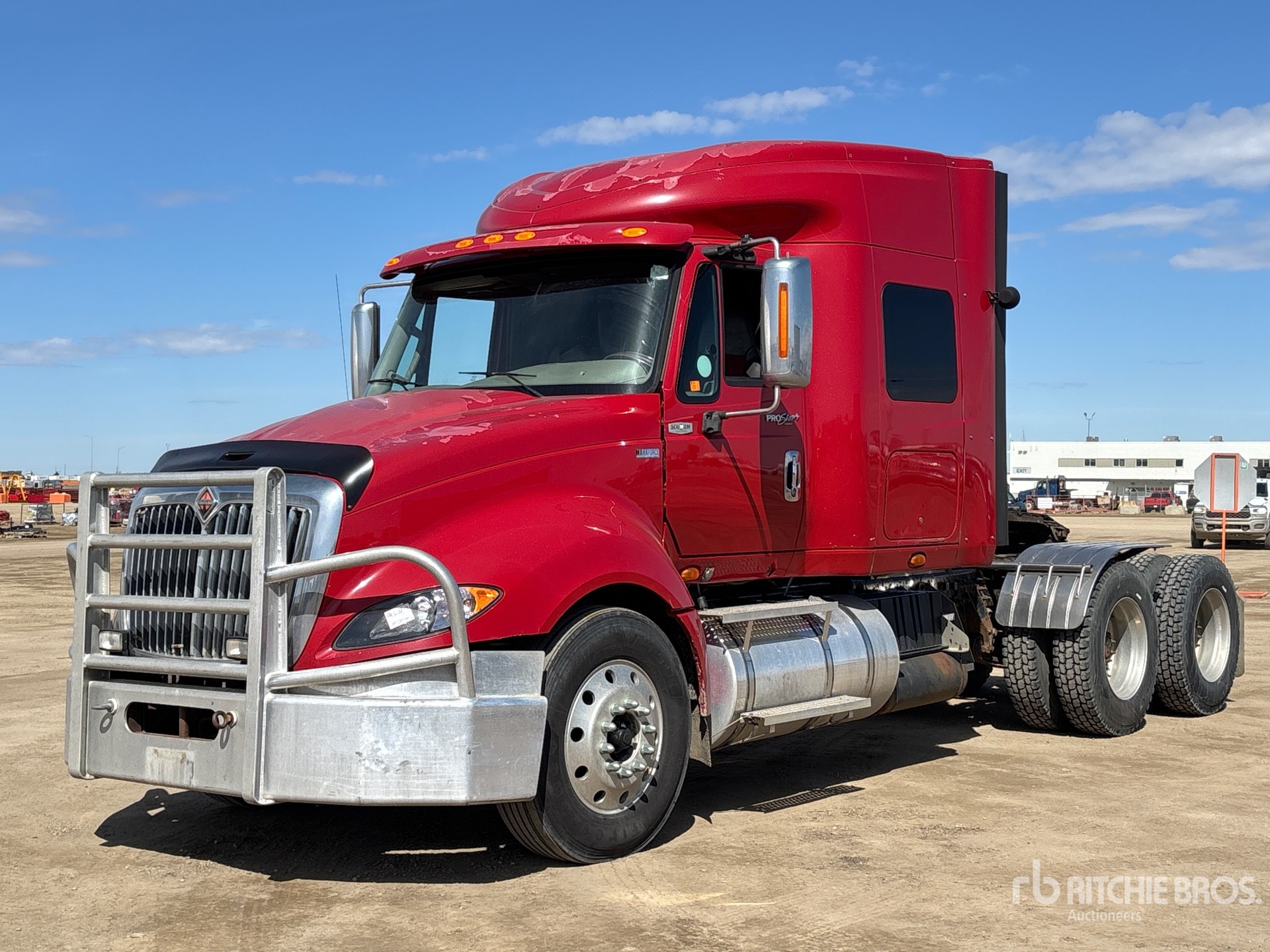 International MaxxForce 13 475 hp Engine, 17223 Engine hrs, Eaton Fuller 18-Speed Manual Transmission, 12000 lb Front Axle, 40000 lb Rears, 52000 lb GVWR, Engine Brake, Differential Lock, 51 in Mid Roof Sleeper Cab, 224 in Wheelbase, Air Suspension, Aluminum Outer Wheels, 11R24.5, Air Sliding 5th Wheel, Dual Fuel Tanks