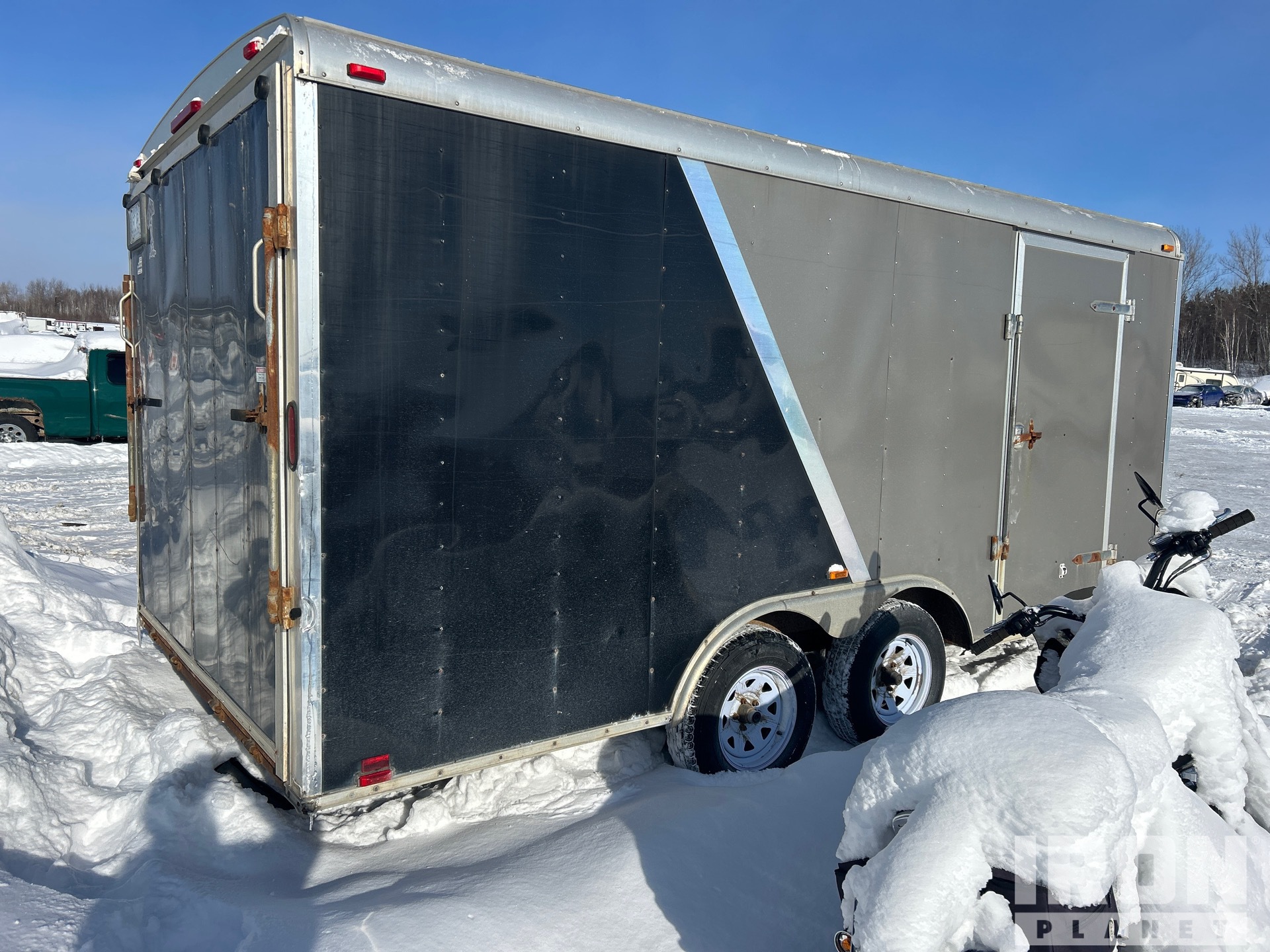 Lunette Ring Hitch, Torsion Axle, Electric Brakes, Ramp, Side Door 205/75R15 Tires, 7000 lb GVWR, V-nose With Front Ramp