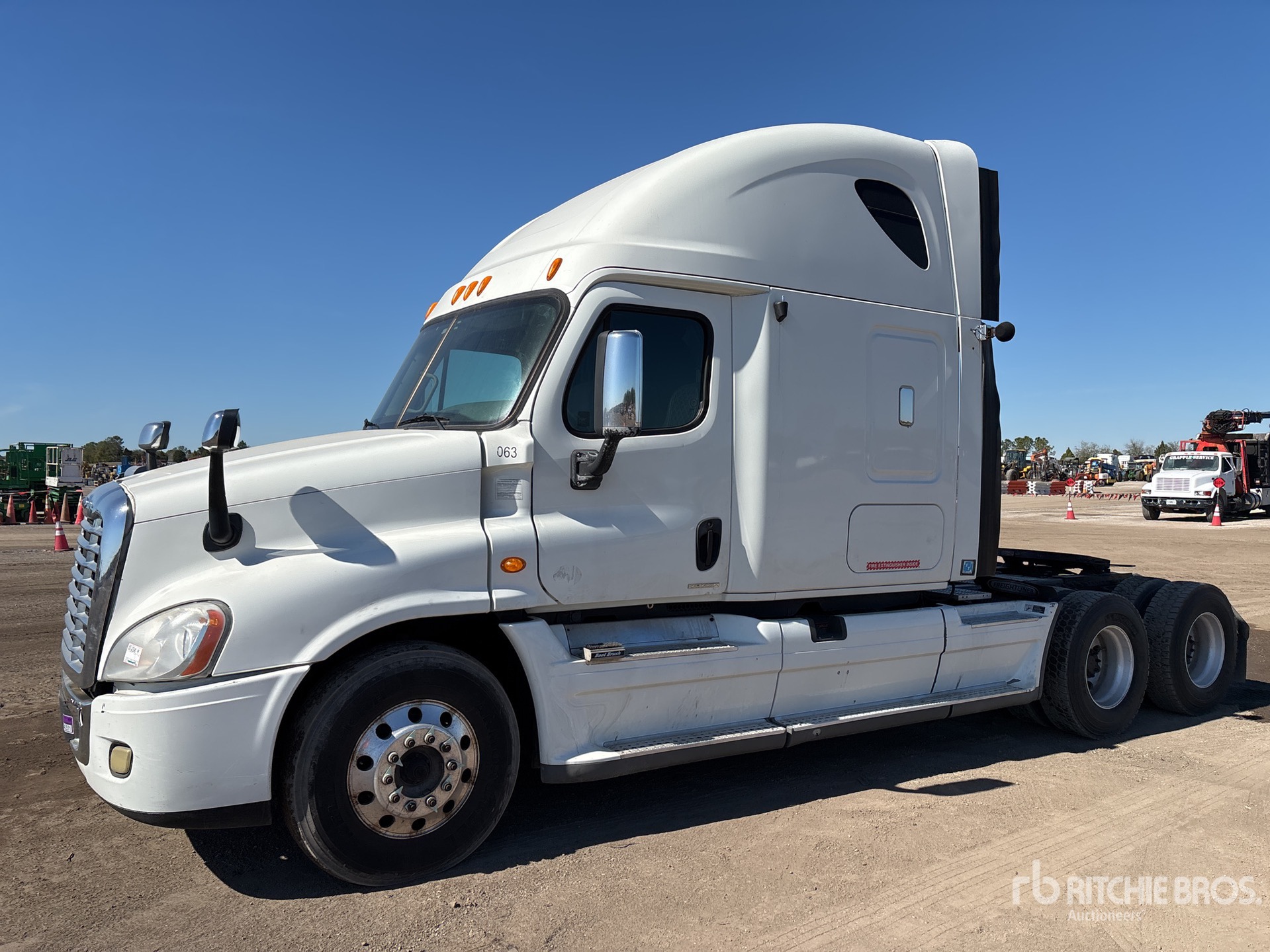 Detroit DD15 455 hp Engine, 15849 Engine hrs, Eaton Fuller RTLO-16913A 13-Speed Manual Transmission, 13200 lb Front Axle, 46000 lb Rears, 59200 lb GVWR, Engine Brake, 70 in High Rise Sleeper Cab, Bunk Beds, 228 in Wheelbase, Air Suspension, Aluminum Wheels, 11R22.5, Dual Fuel Tanks