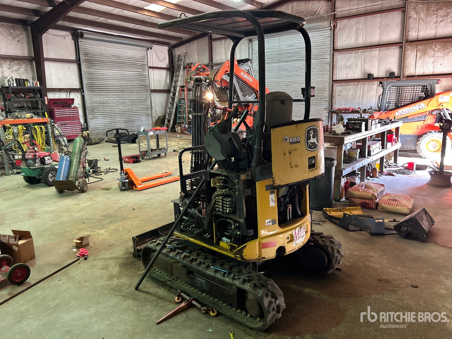 Swing Boom, 3 ft Stick, Auxiliary Hydraulic Plumbing, Backfill Blade, 9 in Rubber Tracks, Expandable Width Tracks, Manual Quick Coupler, 10 in Digging Bucket, Equipment-from-Mathis-Rentals