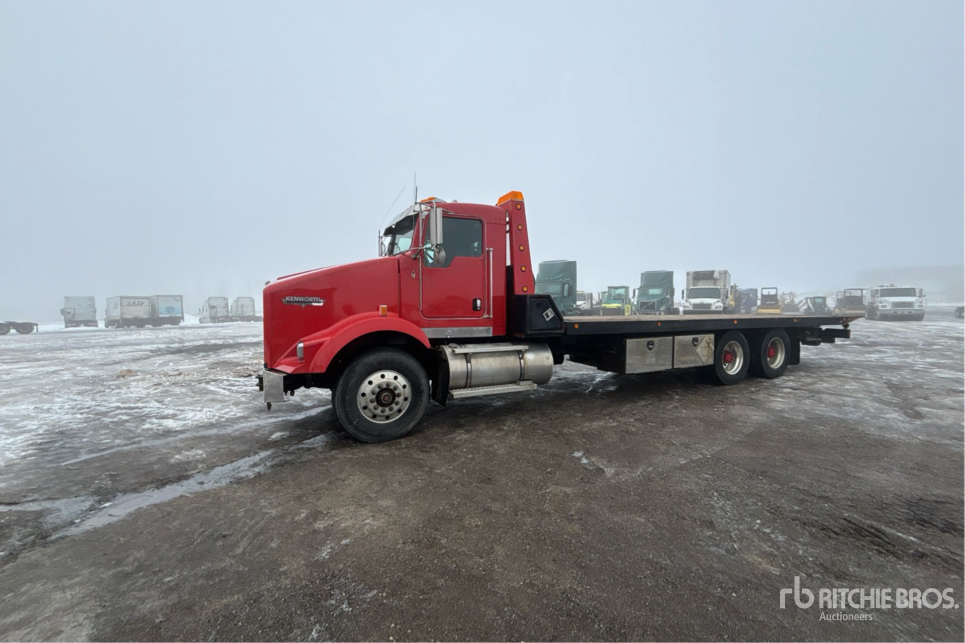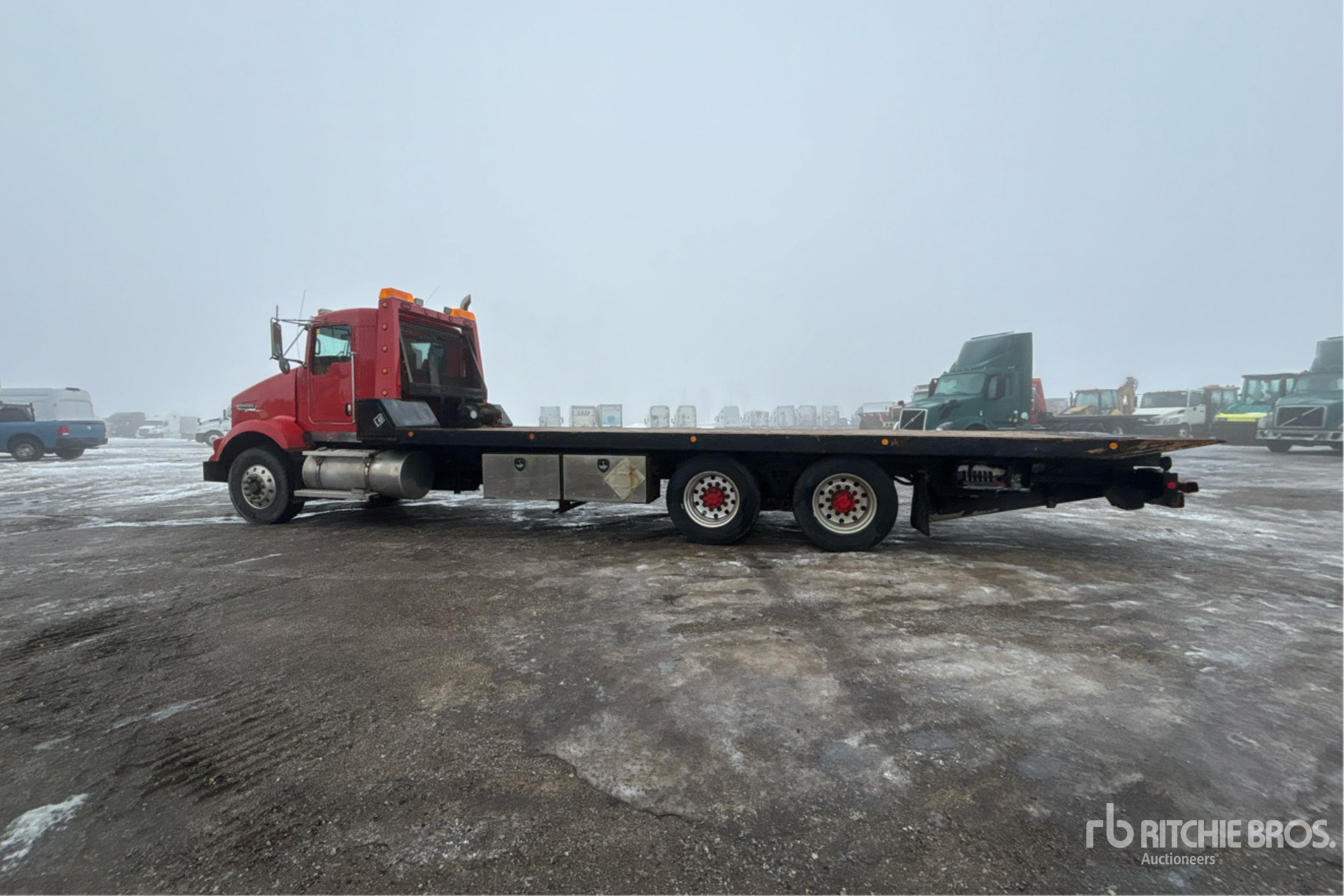Paccar MX 6 Cylinder 12.9 L Diesel 455 hp Engine, 2011 US EPA Label, Requires Diesel Exhaust Fluid, 24720 Engine hrs, Engine Brake, Eaton Fuller FRO-16210C 10-Speed Manual Transmission, Double Differential Locks, 20000 lb Front Axle, 40000 lb Rears, 60000 lb GVWR, Aluminum Wheels, 315/80R22.5 Front Tires, 445/50R22.5 Super Singles Rear Tires, 8-Bag Air Ride Suspension, 267 in Wheelbase, PTO, 25 ft x 102 in Bed, Winch, Hydraulic Wheel Lift