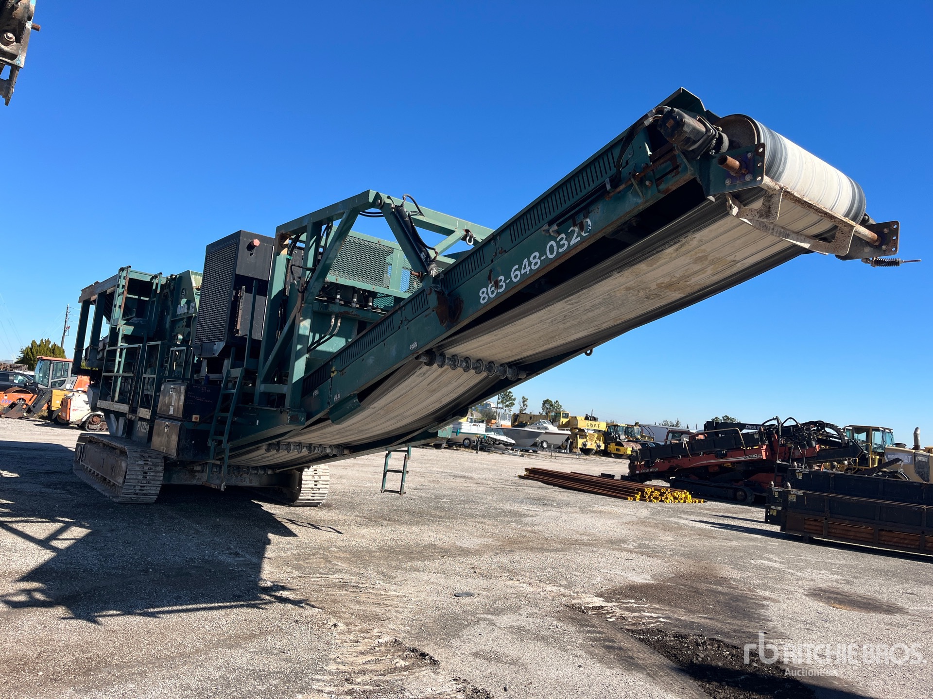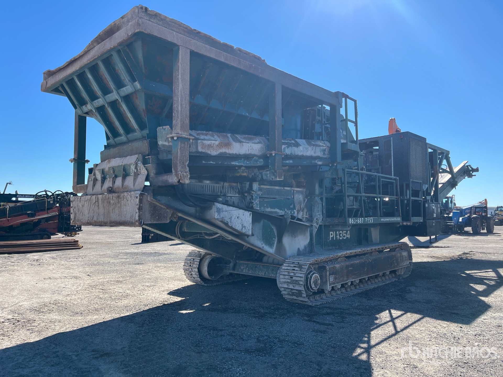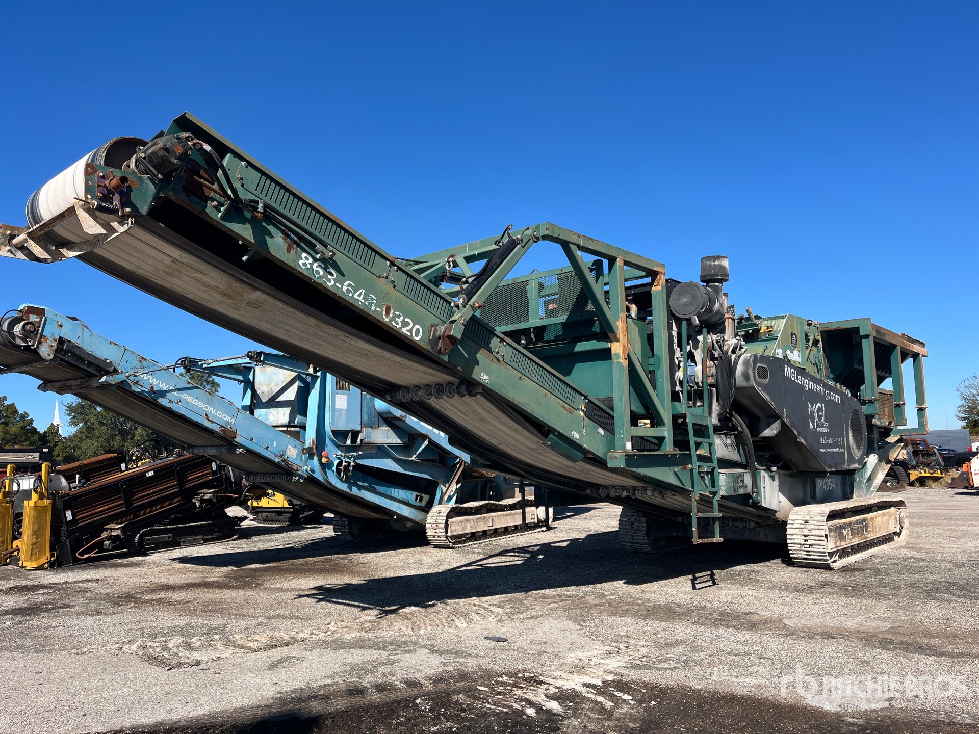 Belt Feeder w/Grizzly 54 in Impact Crusher, Roller Screen, 48 in Wide Feed Conveyor, 48 in Wide Fines Discharge Conveyor, 48 in Wide Under Crusher Conveyor, John Deere 6 Cylinder Diesel Engine, 20 in Triple Grouser Track Shoes