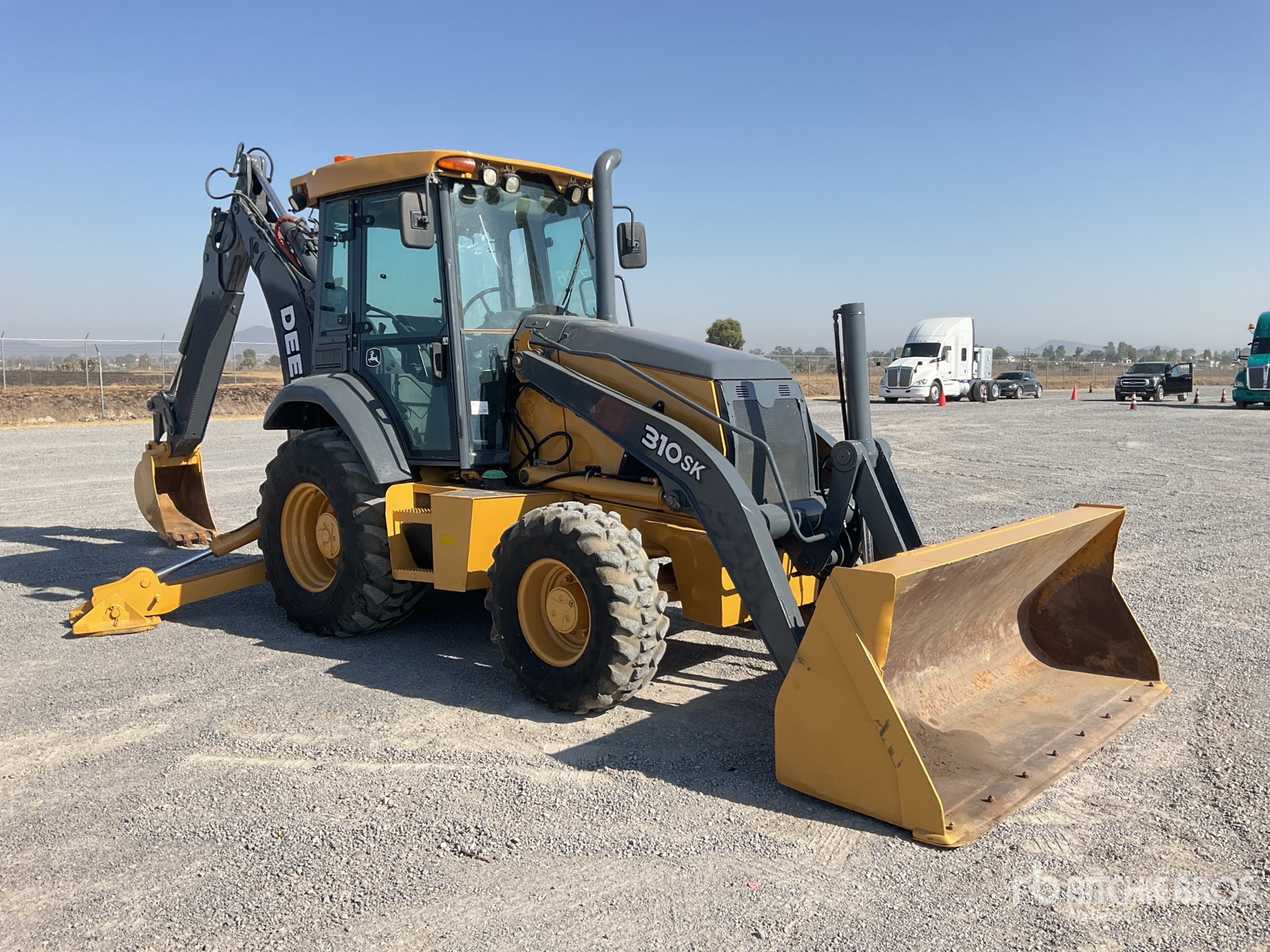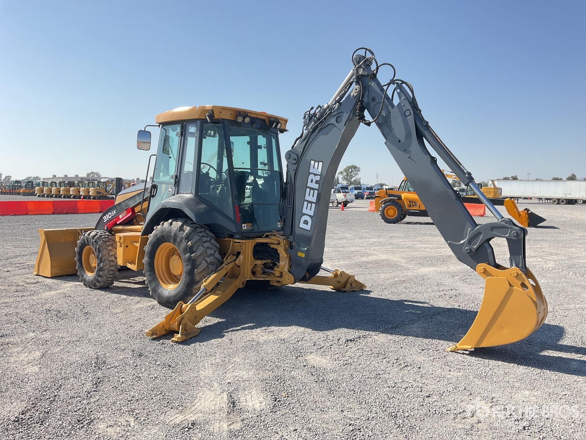 Located in Lane 5 Spot 23, Enclosed Cab, Air Conditioner, Backhoe Pilot Controls, 2013 US EPA Label, Hydraulic Coupler, 91 in Loader Bucket, Extendable Stick, 18 in Backhoe Digging Bucket, Rear Auxiliary Hydraulics, / Cabina, Aire Acondicionado, Controles Retroexcavadores Tipo Piloto, EPA 2013, Acoplador Hidraulico, Cucharon Cargador 91 in, Brazo Extensible, Cucharon Retroexcavador 18 in, Sistema Auxiliar Hidraulico Trasero ; US-EPA-CERTIFIED