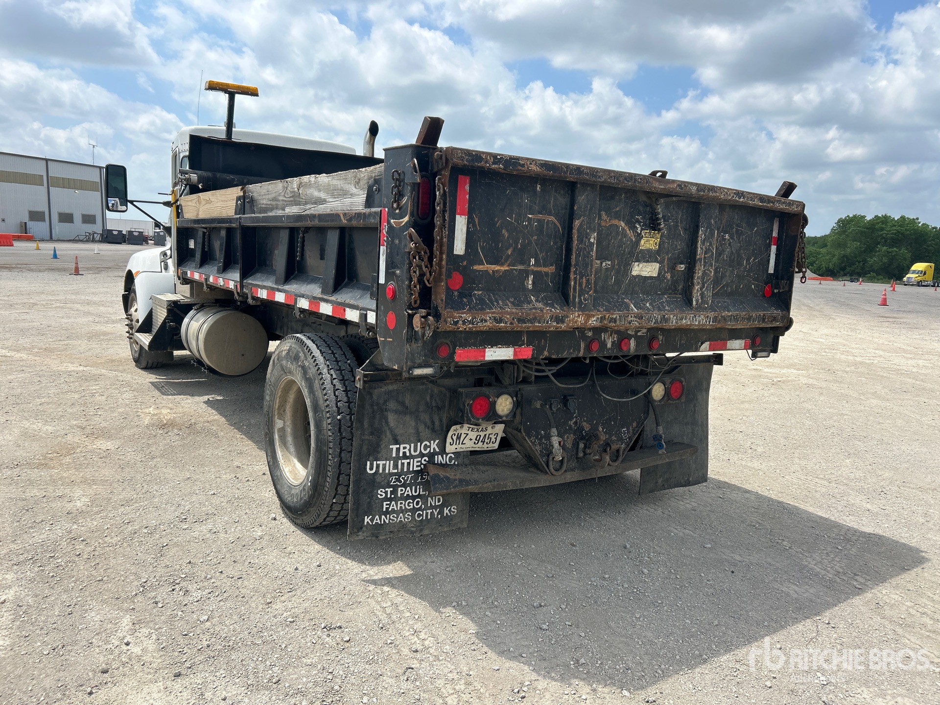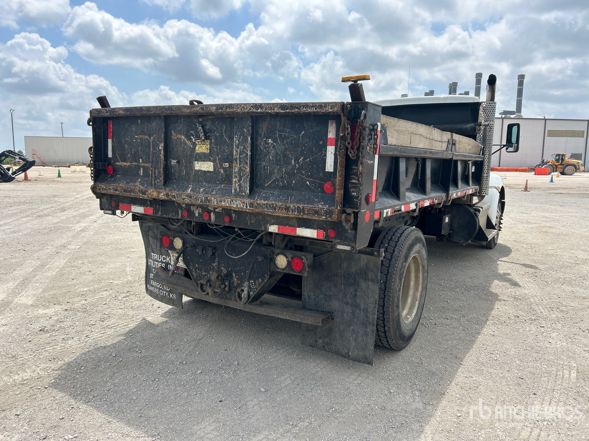 Paccar PX-8 6 Cylinder 8.3 L Diesel 300 hp Engine, 2012 US EPA Label, Requires Diesel Exhaust Fluid, 9103.5 Engine hrs, Allison 3000 Automatic Transmission, 12000 lb Front Axle, 24000 lb Rears, Spicer P20060S Drive Axles, 5.29:1 Axle Ratio, 33000 lb GVWR, Aluminum Outer Wheels, 11R22.5, Hendrickson Air Ride Suspension, 220 in Wheelbase, PTO, Beau Roc 14 ft Long x 2 ft High Steel Body, Manual Roll Tarp
