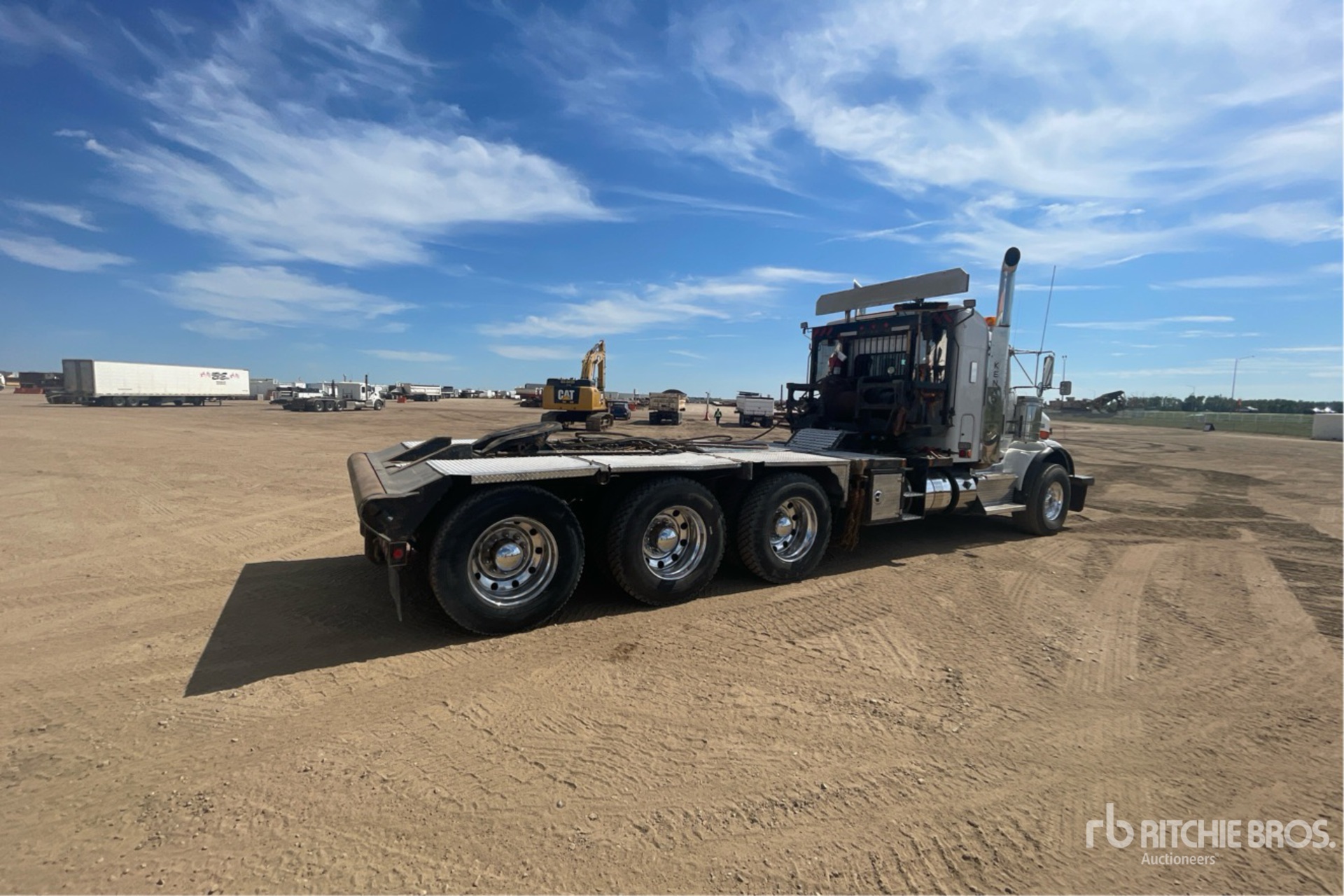 Cummins ISX15 6 Cylinder 15.0 L Diesel 550 hp Engine, 2012 US EPA Label, Positive Air Shutoff, 21903 Engine hrs, Engine Brake, Eaton Fuller 18-Speed Manual Transmission, Triple Differential Locks, 20000 lb Front Axle, 64000 lb Rears, Dana T69-170HP Drive Axles, 4.30:1 Axle Ratio, 84000 lb GVWR, Air Ride Cab, 28 in Mid Roof Sleeper Cab, Aluminum Wheels, 425/65R22.5 Front Tires, 11R24.5 Rear Tires, Dual Steering Boxes, Double Frame, Neway Air Ride Suspension, 270 in Wheelbase, PTO, Live Roll, Ramsey Hydraulic 40000 kg Winch, Lowboy Ramps, Edge-Energy-and-Pace-Transportation