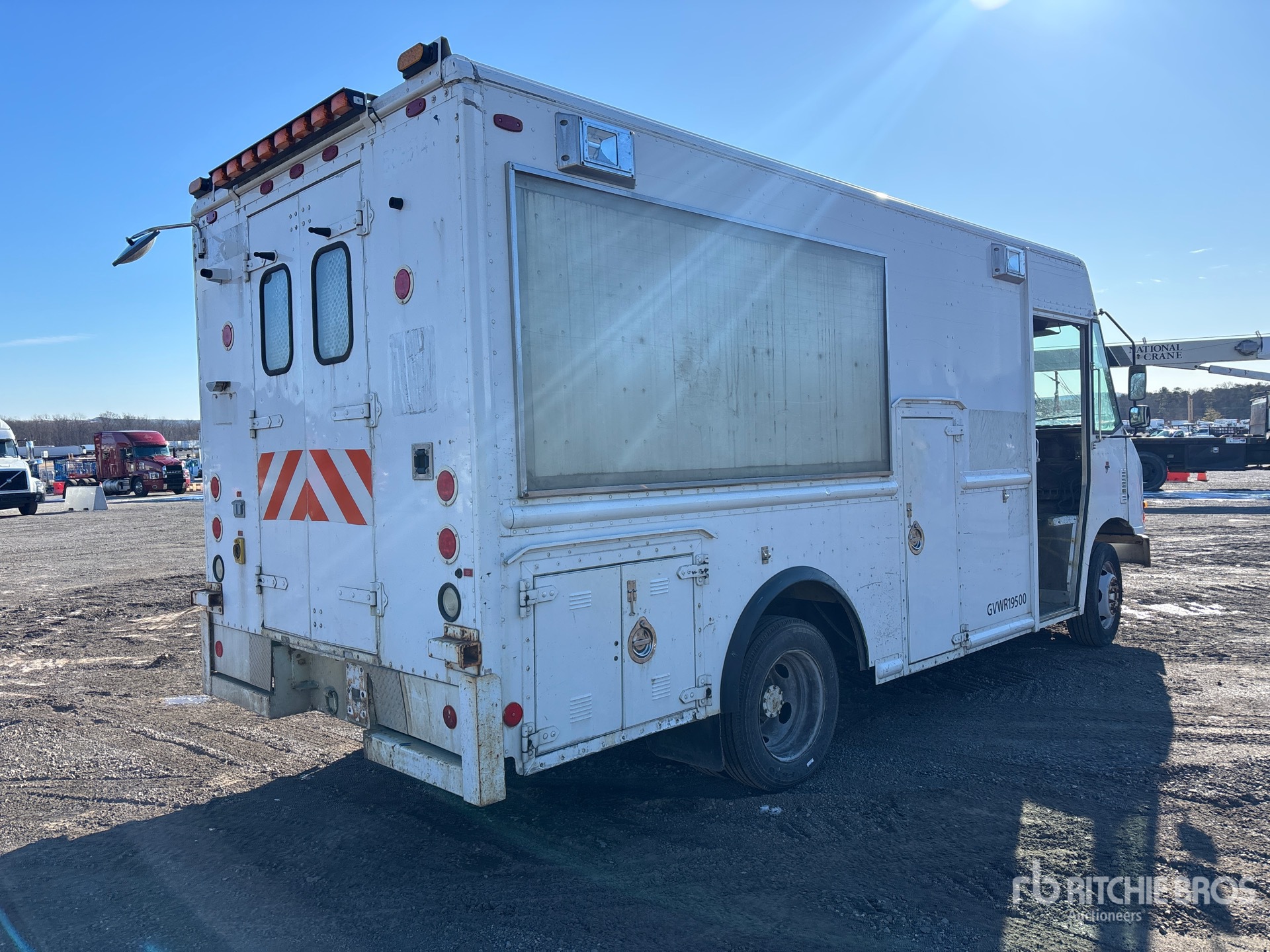V10 Gasoline Engine, 4799 Engine hrs, Automatic Transmission, 7000 lb Front Axle, 13500 lb Rears, 19500 lb GVWR, 225/70R19.5, Spring Suspension, 169 in Wheelbase, 12 ft x x 81 in High Body