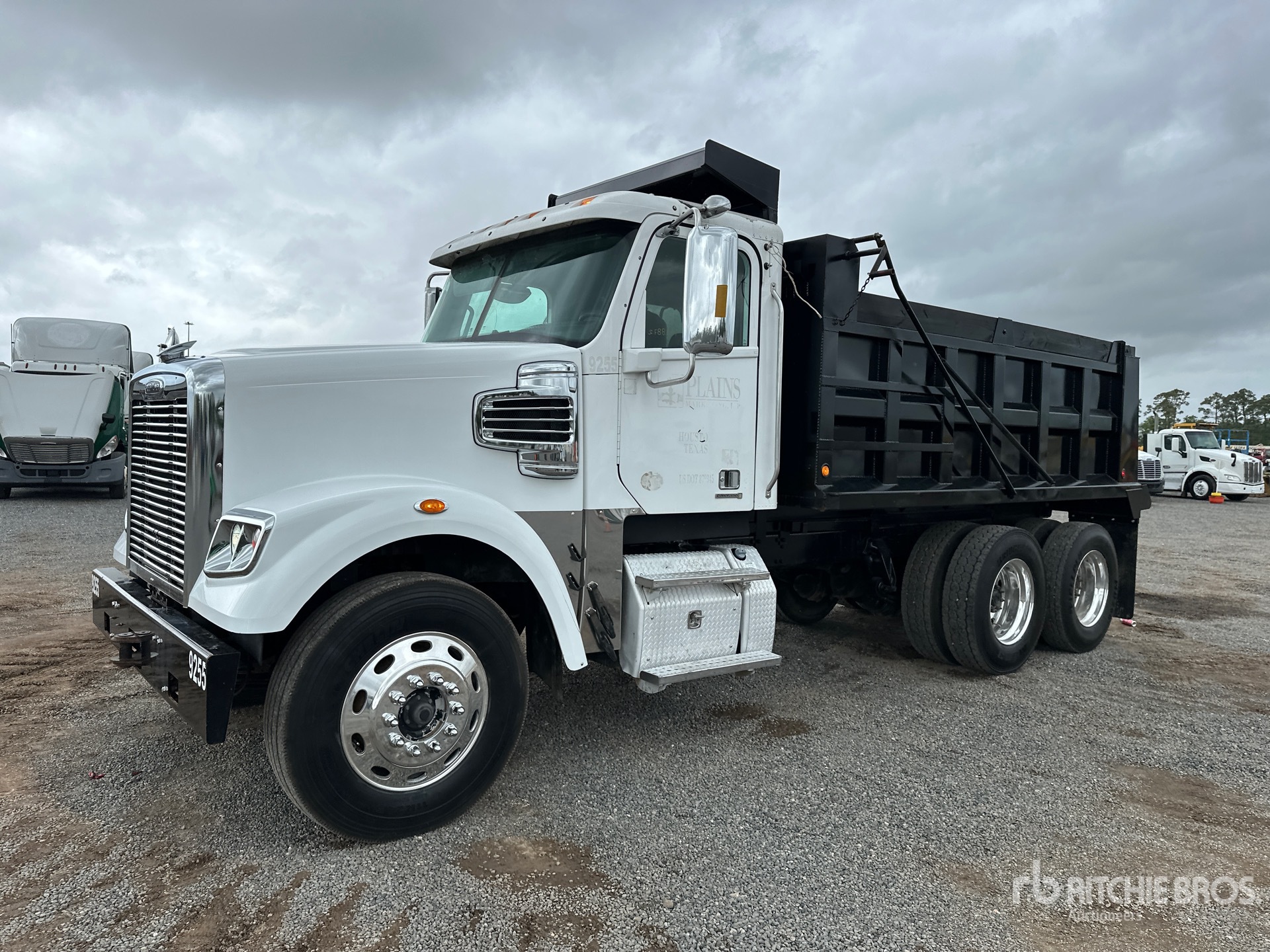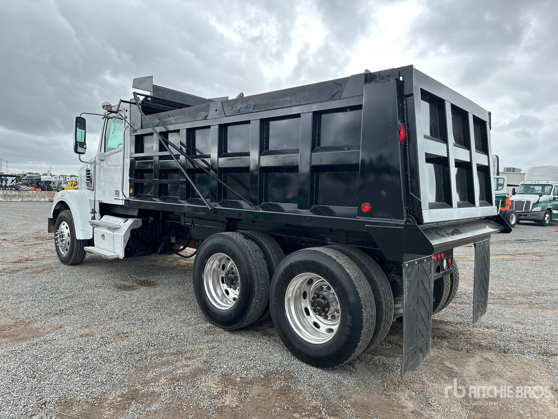 Located in Lane 25 Spot 14, Detroit DD15 6 Cylinder 14.8 L Diesel 455 hp Engine, 2012 US EPA Label, Requires Diesel Exhaust Fluid, Engine Brake, Eaton Fuller 10-Speed Manual Transmission, 14320 lb Front Axle, 45000 lb Rears, 3.70:1 Axle Ratio, 58320 lb GVWR, Aluminum Outer Wheels, 11R24.5 Front Tires, 11R24.5 Rear Tires, Airliner Air Ride Suspension, 212 in Wheelbase, PTO, 14 ft 5 in Long x 48 ft High Body, Manual Roll Tarp