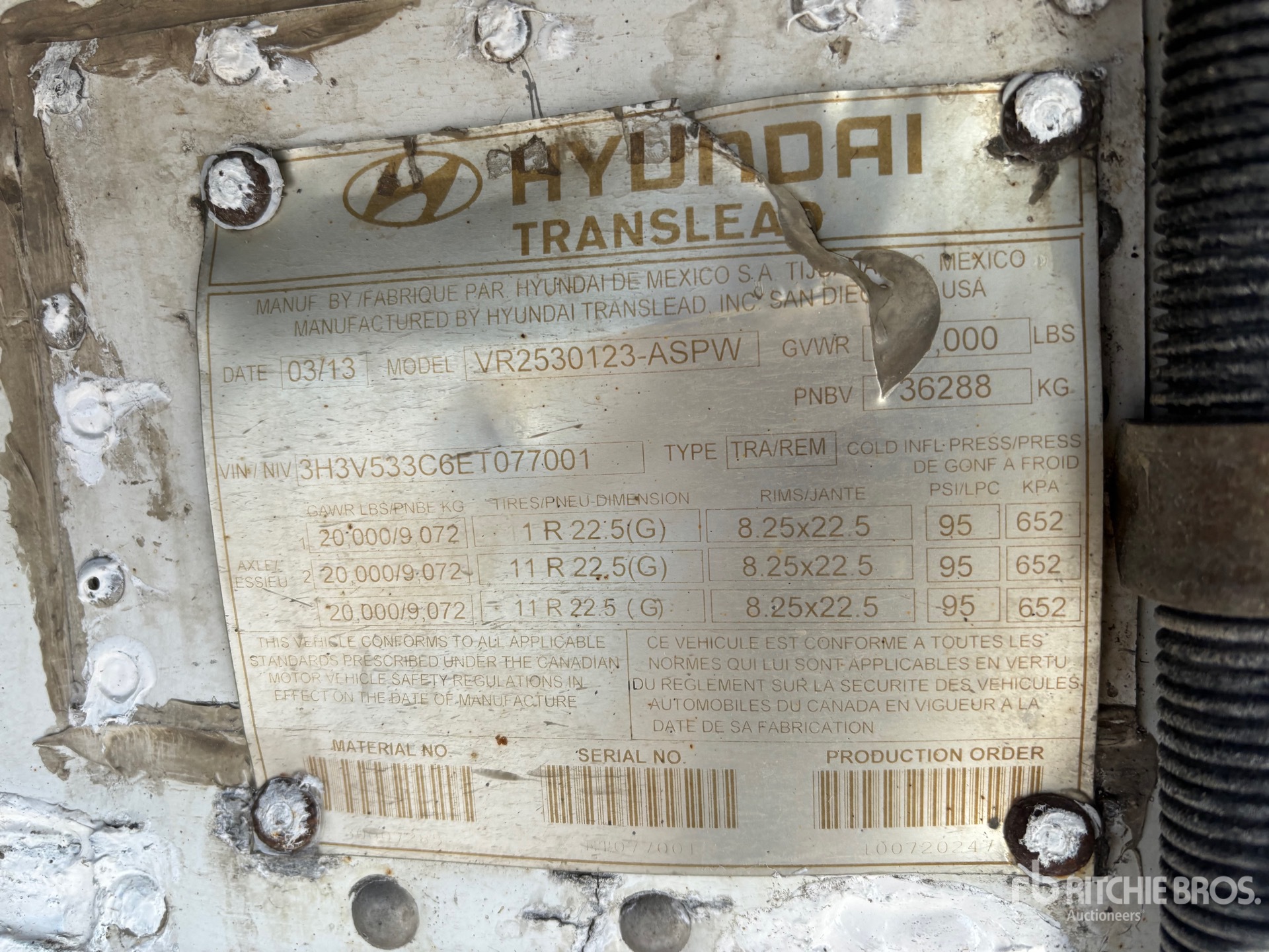 La información detallada del equipo tiene un ámbito limitado y Ritchie Bros. Auctioneers no ha inspeccionado ningún aspecto ni componente del equipo distinto de los expuestos expresamente aquí. A menos que se indique expresamente, no realizamos declaraciones ni ofrecemos garantías, expresas o implícitas, con respecto al equipo o a sus componentes, incluidas, entre otras, representaciones o garantías relativas a la funcionalidad, la conformidad o el cumplimiento de normativas de seguridad de autoridades u órganos reguladores competentes, así como tampoco sobre la aptitud para cualquier propósito particular o para fines de comercialización. Te aconsejamos que realices tu propia inspección detallada del equipo antes de la subasta.