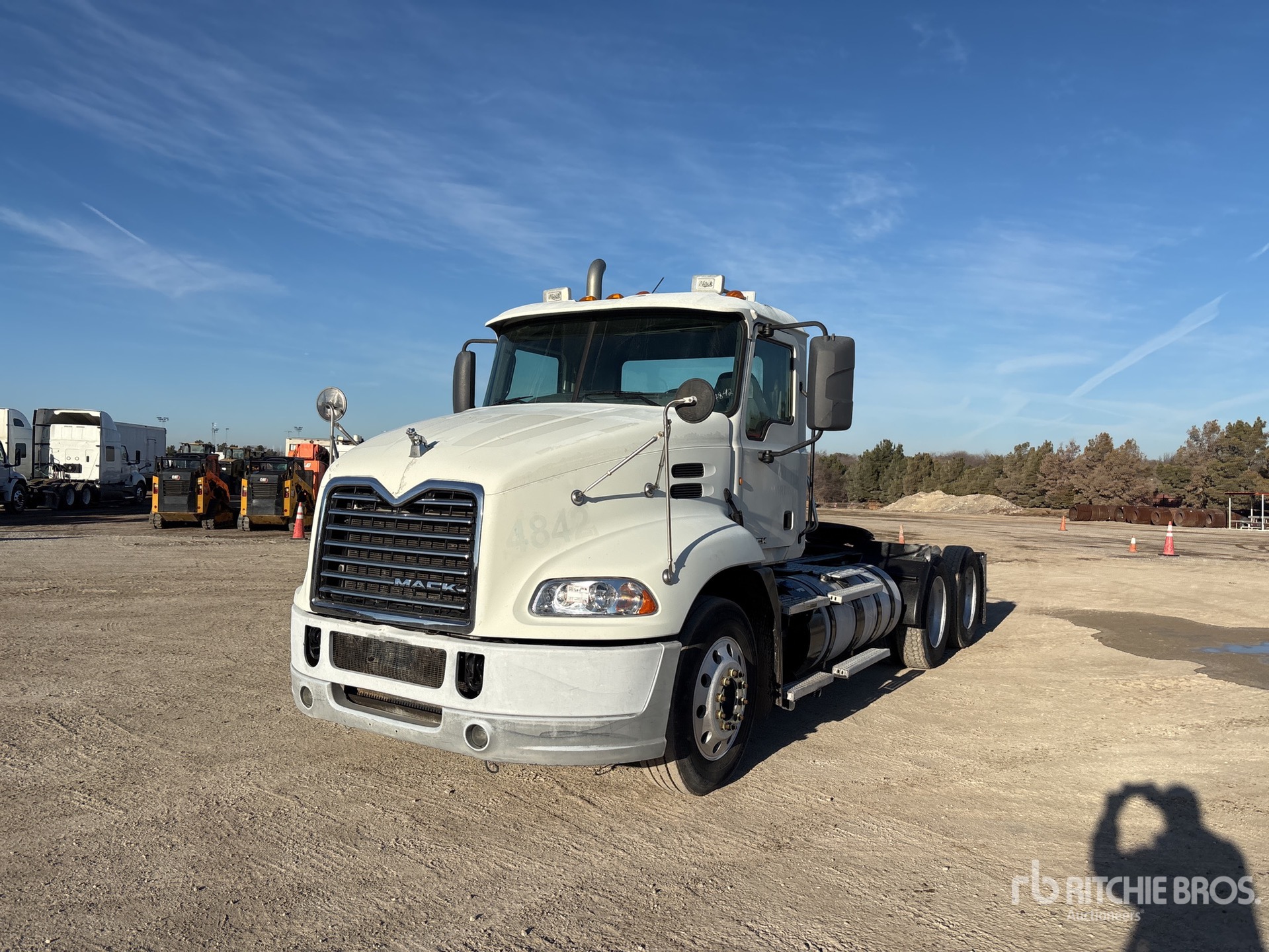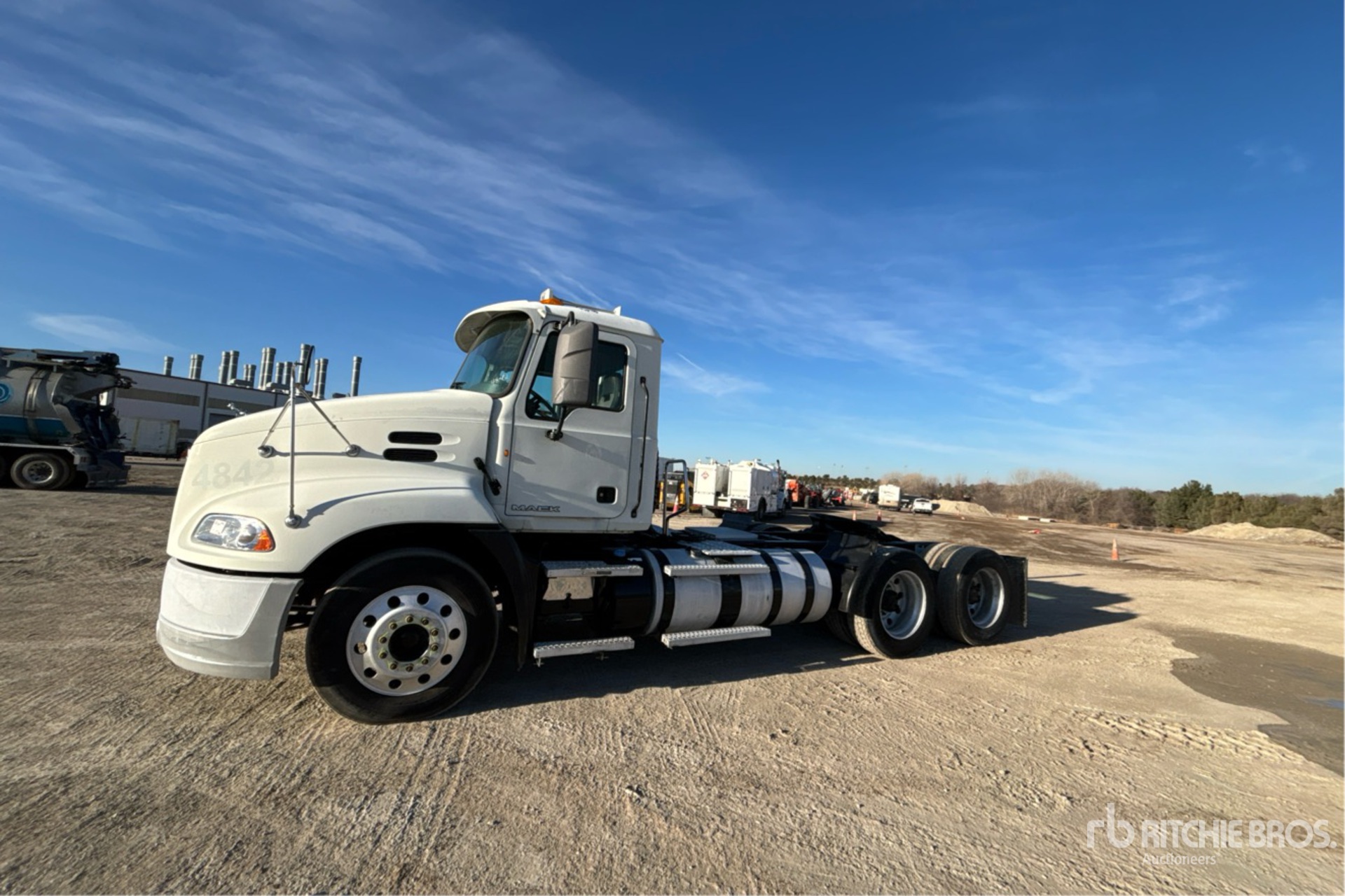 Located in Lane 30 Spot 24, Mack MP7 395 hp Engine, 2013 US EPA Label, Eaton Fuller 13-Speed Manual Transmission, 12350 lb Front Axle, 40000 lb Rears, 52350 lb GVWR, Engine Brake, 191 in Wheelbase, Air Suspension, Aluminum Wheels, 285/75R24.5