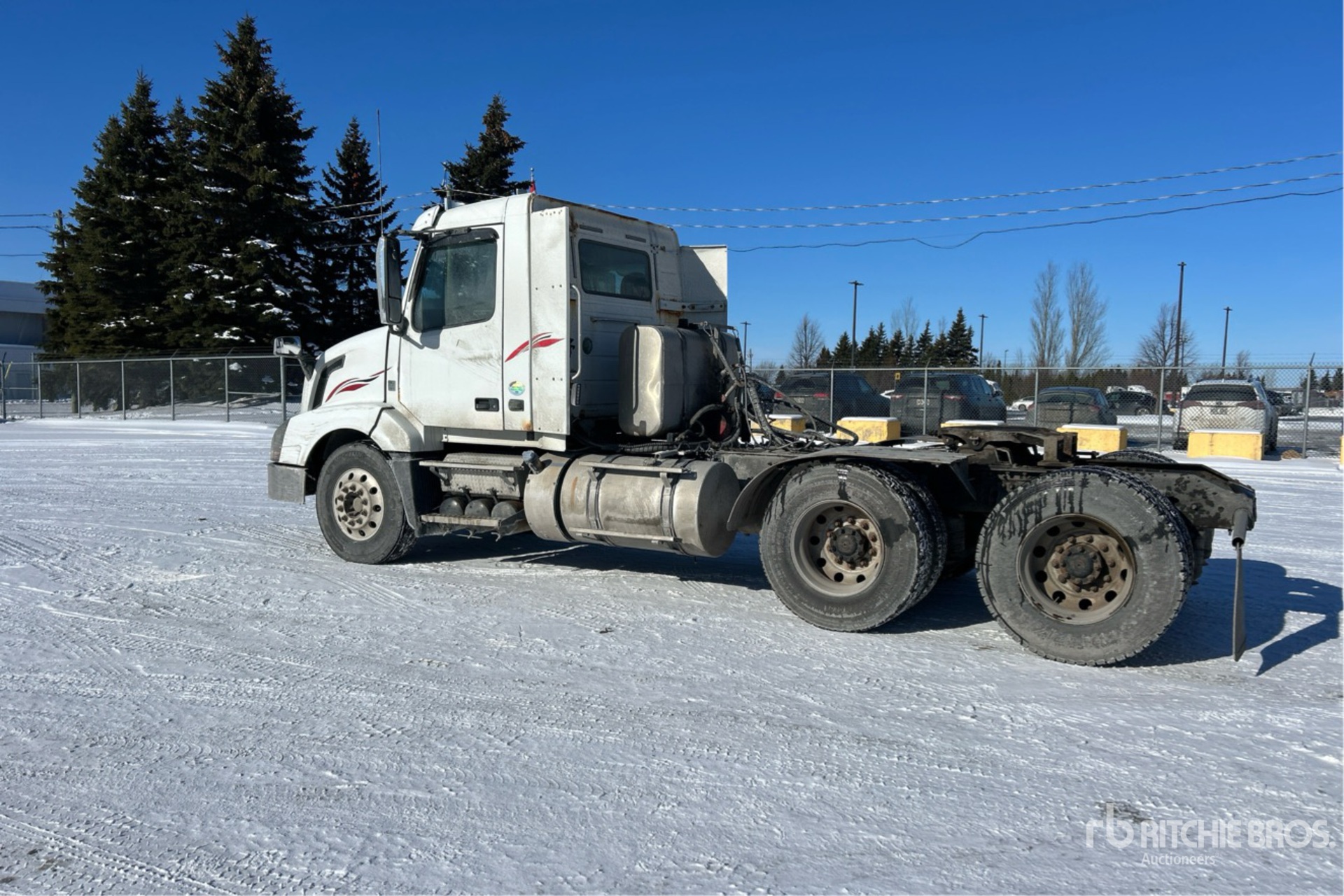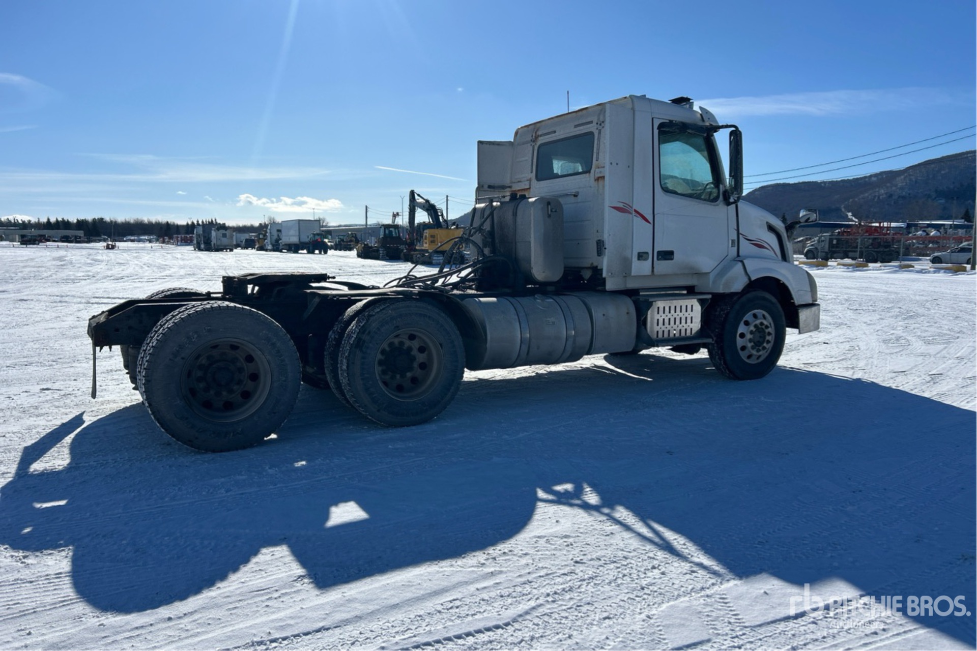 Volvo D13H 500 hp Engine, 2013 US EPA Label, 37166 Engine hrs, Volvo ATO2612D 12-Speed Automated Transmission, 13200 lb Front Axle, 46000 lb Rears, 26853 kg GVWR, Engine Brake, Differential Lock, 191 in Wheelbase, Air Suspension, Aluminum Outer Wheels, 11R22.5 Front Tires, 11R22.5 Rear Tires, Wet Kit, Dual Fuel Tanks