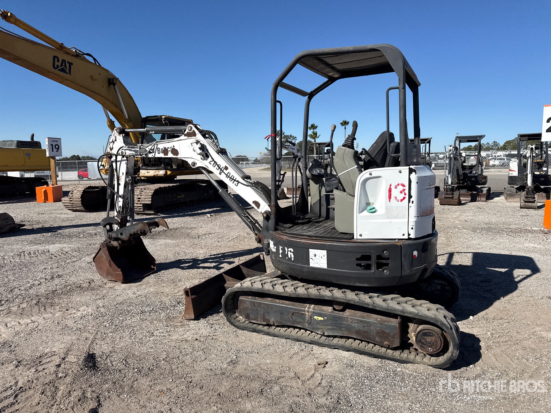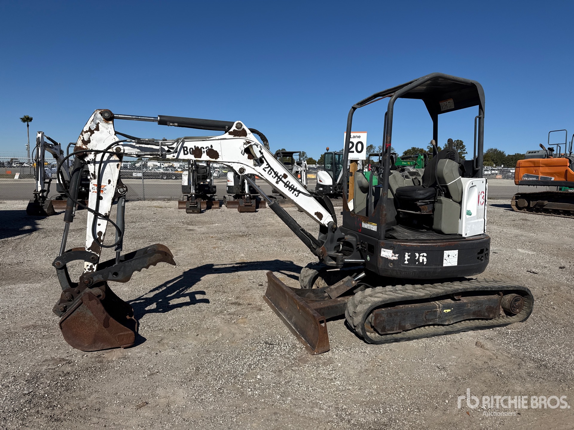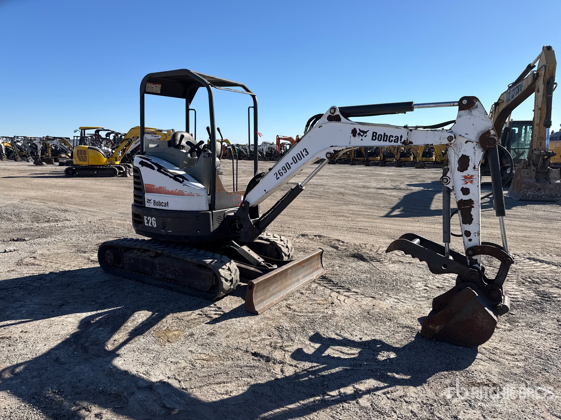 Swing Boom, 3 ft 6 in Stick, Auxiliary Hydraulic Plumbing, Backfill Blade, 12 in Rubber Tracks, 24 in Cleanup Bucket, Hydraulic Thumb