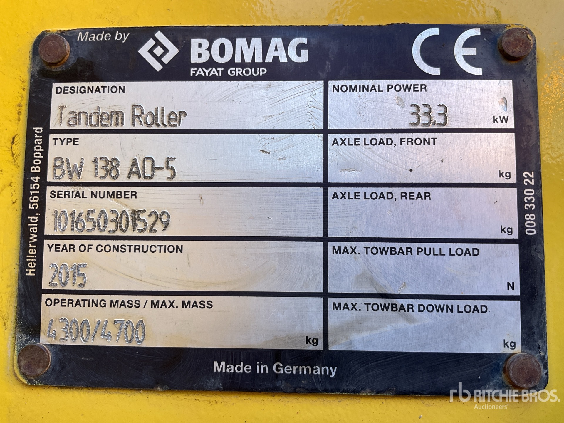 La información detallada del equipo tiene un ámbito limitado y Ritchie Bros. Auctioneers no ha inspeccionado ningún aspecto ni componente del equipo distinto de los expuestos expresamente aquí. A menos que se indique expresamente, no realizamos declaraciones ni ofrecemos garantías, expresas o implícitas, con respecto al equipo o a sus componentes, incluidas, entre otras, representaciones o garantías relativas a la funcionalidad, la conformidad o el cumplimiento de normativas de seguridad de autoridades u órganos reguladores competentes, así como tampoco sobre la aptitud para cualquier propósito particular o para fines de comercialización. Te aconsejamos que realices tu propia inspección detallada del equipo antes de la subasta.